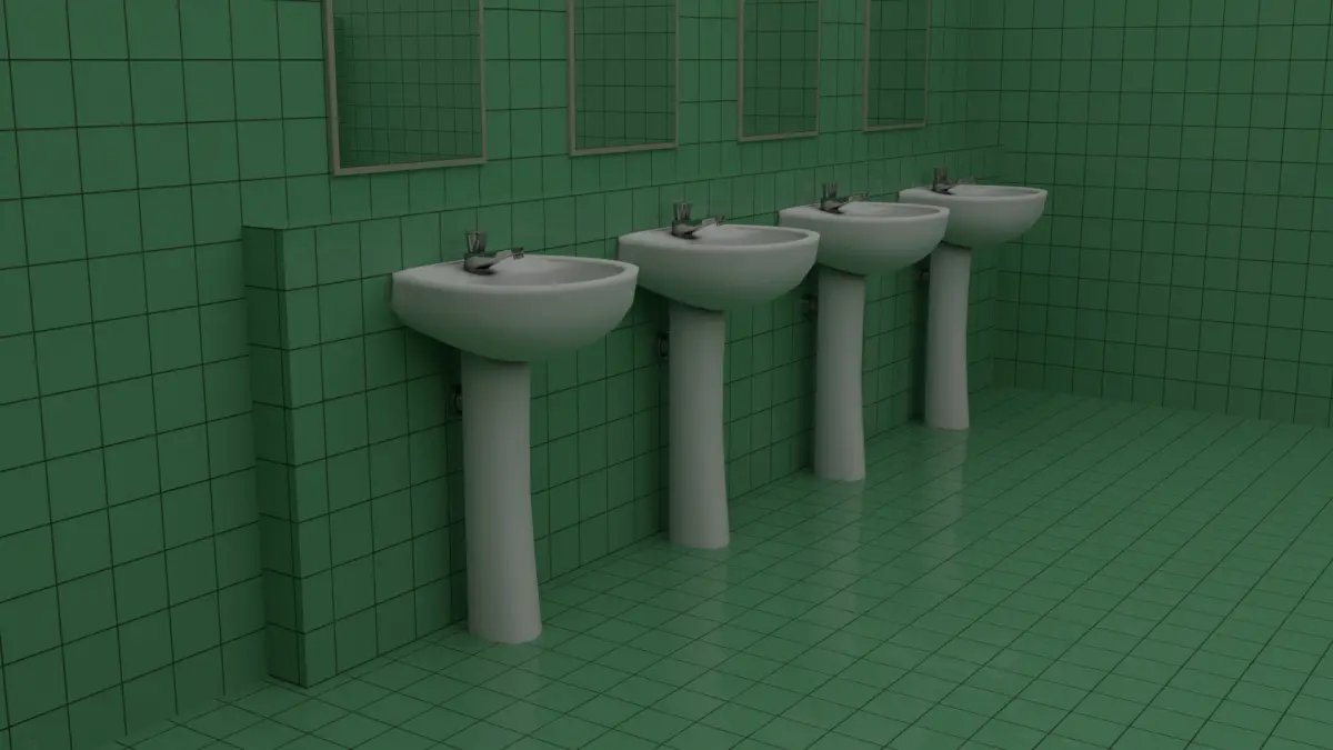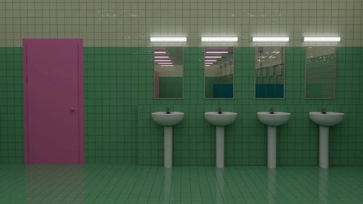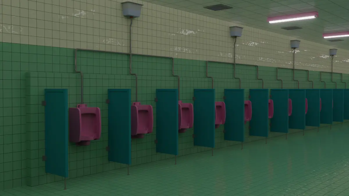 A 3D model of the men's restroom from Squid Game Season 2, where the intense fight scene took place. Designed with tiled walls, narrow halls, and dim lighting—perfect for games, animations, and film projects.