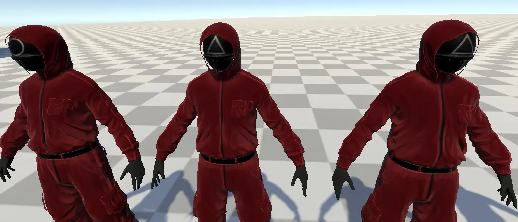 Squid Game pink Soldiers with Textures High QualitySquid Game assetsSquid game soldiers ready for unity , blender And unreal engine pink soldiersLow Poly 3d model