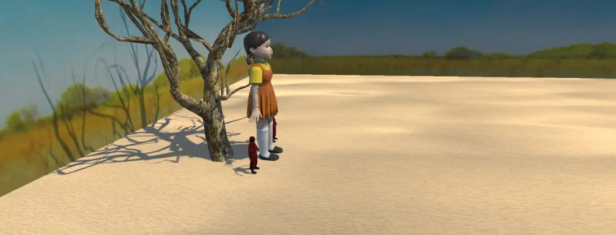 Squid Game Red Light Green Light Map with Textures High Quality Squid Game assets Squid game Red Light Green Light Map ready for unity , blender And unreal engine Red Light Green Light Map Low Poly 3d model Including HIgh Quality Doll And Pink Soldiers