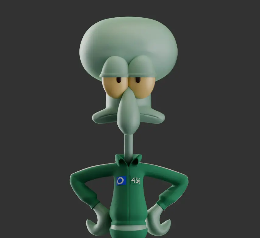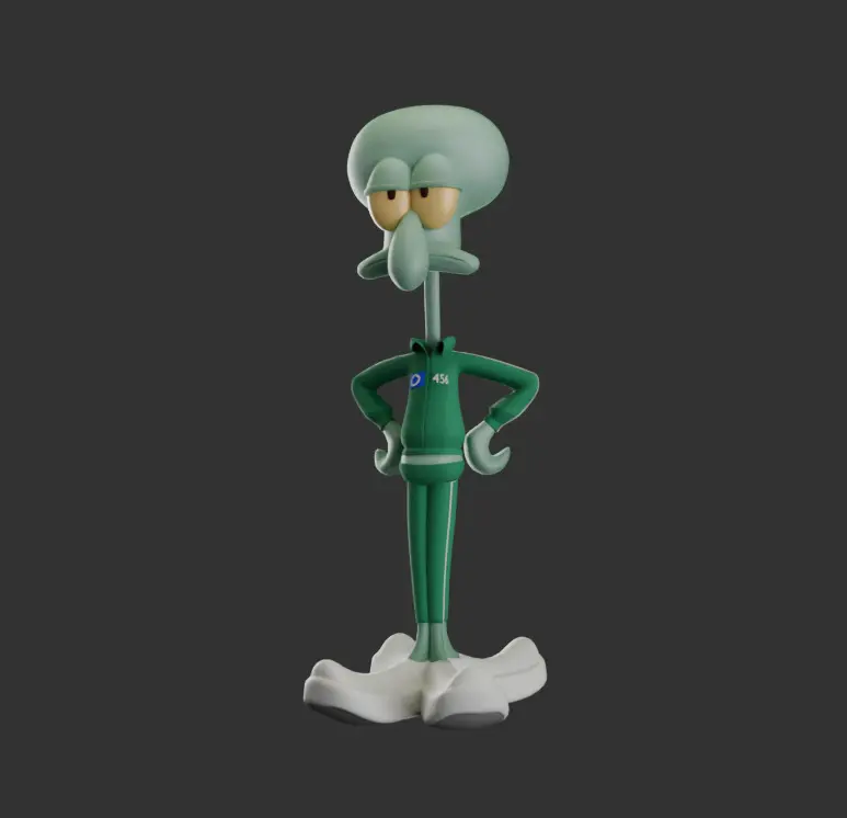 This is a high-quality fan art 3D model of Squidward Tentacles, reimagined in the universe of Squid Game. Designed with stylized proportions and a cartoon finish, this character is perfect for creative scenes, renders, or adaptations in fan-based animations and games.