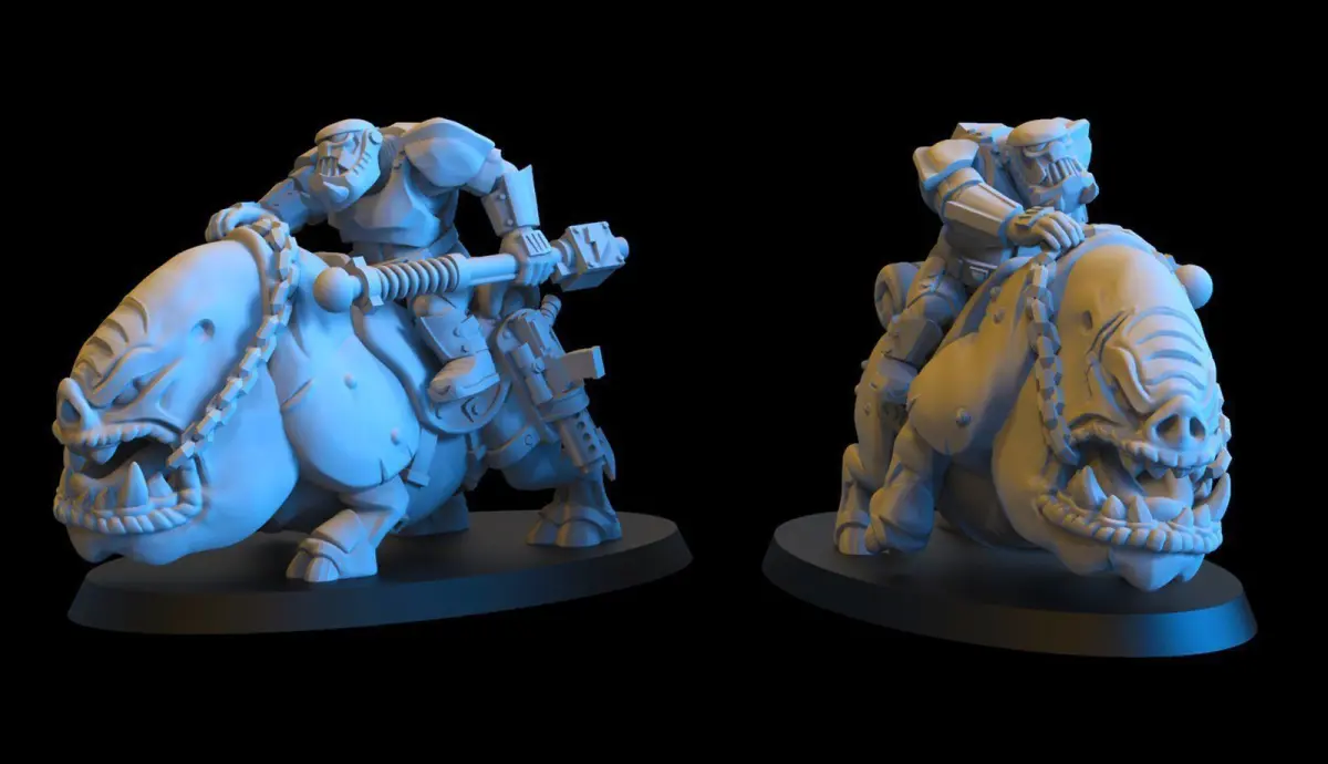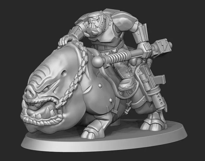 A Stormtroopa Boy with his Squighog mount and electric prod.