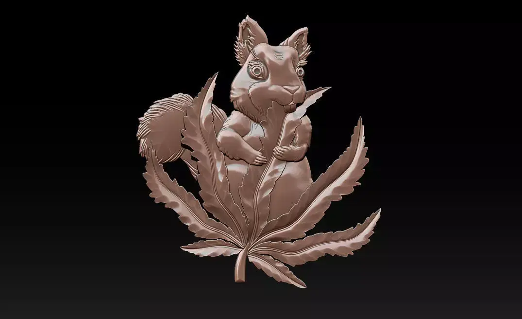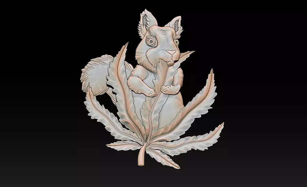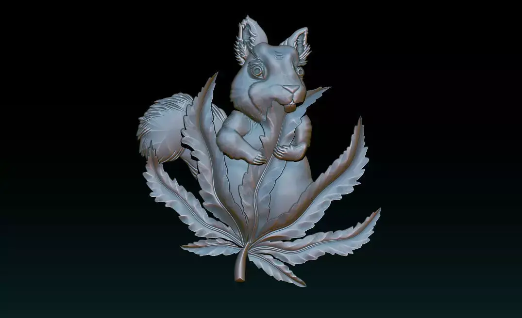 Squirrel Leaf 3D Bas-Relief – STL | OBJ | ZTL – CNC Carving, 3D Printing & Laser Engraving Model