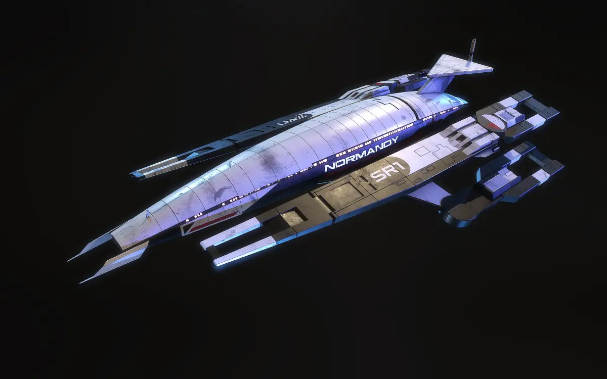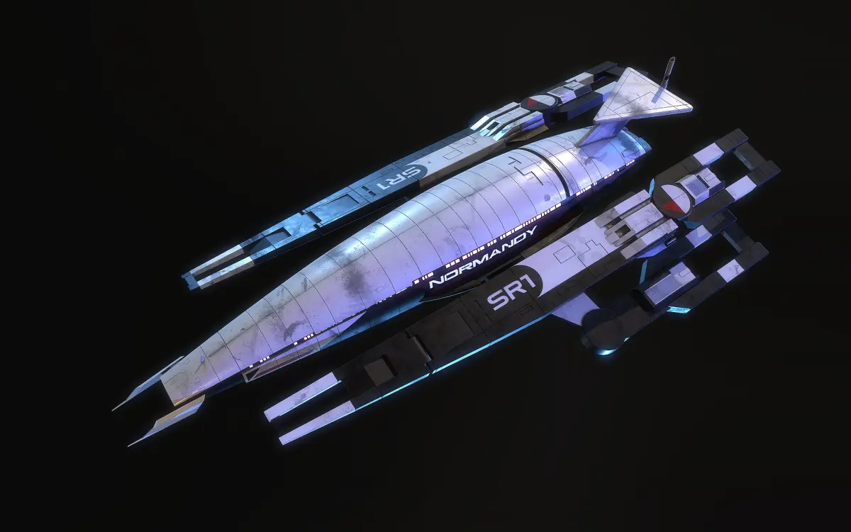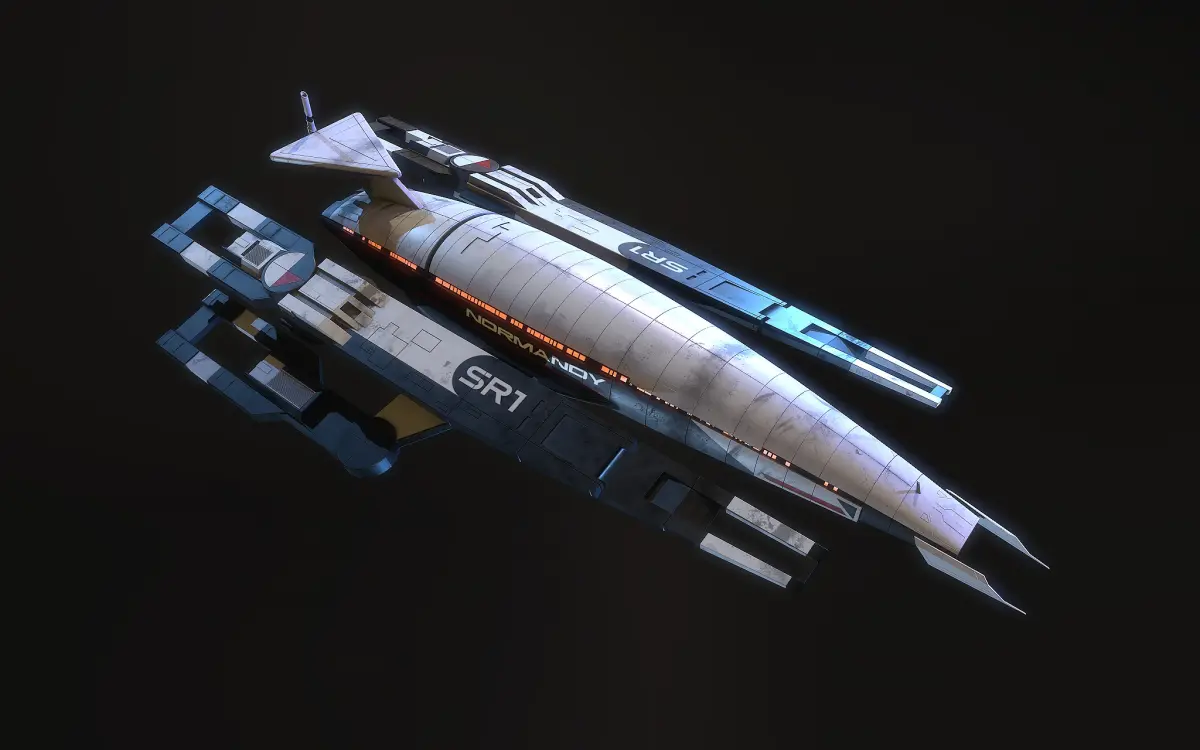 The Normandy-class SR are two fictional spacecraft in the Mass Effect video game franchise. She first appears in Mass Effect as the SSV Normandy SR-1, the product of a joint venture between the human Systems Alliance and the Turian Hierarchy, and described as the most advanced military stealth starship in the galaxy within the series. An improved version of the ship known as the Normandy SR-2, though no longer a commissioned spaceship of the Alliance Navy, is later constructed by the anthropocentric paramilitary organization Cerberus and appears from Mass Effect 2 onwards.