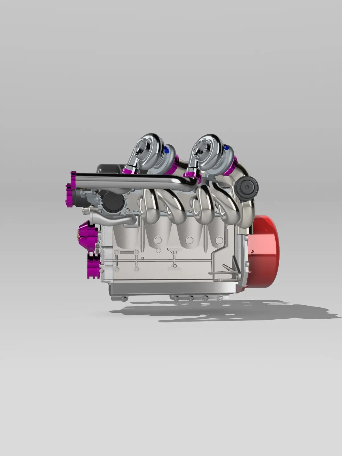 - Twin Turbo format with 2 high mounted turbos, and exhaust & charge pipe (starter pieces)