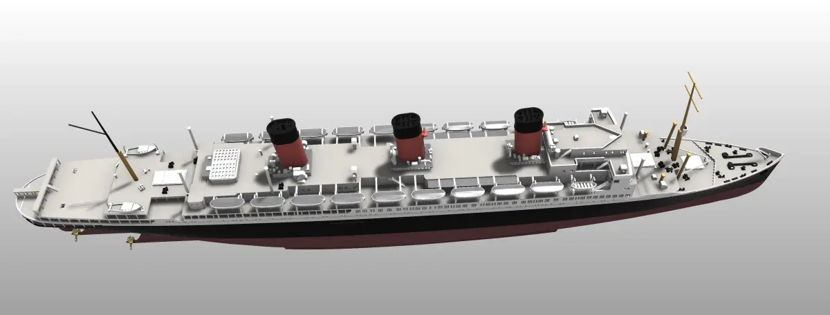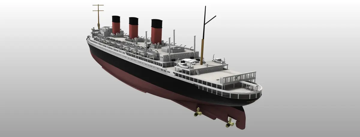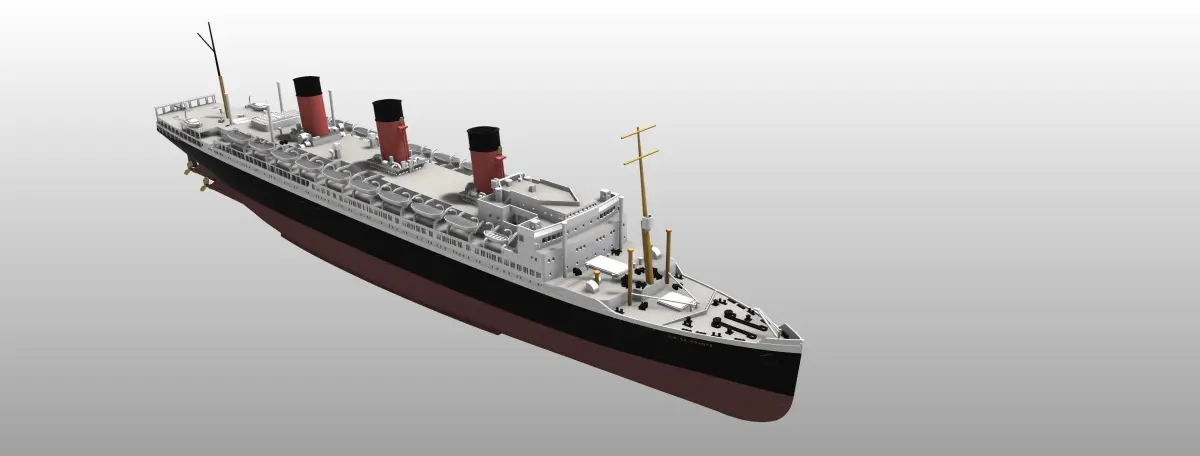 A detailed and accurate model of the fabled french liner SS Ile de France, as launched (1927). After WW2, she would be significantly modified and her third funnel was removed. Full hull and waterline versions are included and, as usual, easily printable at larger or smaller scales!