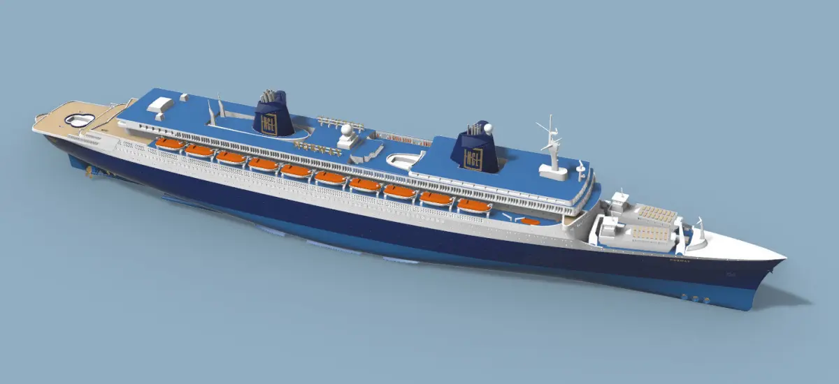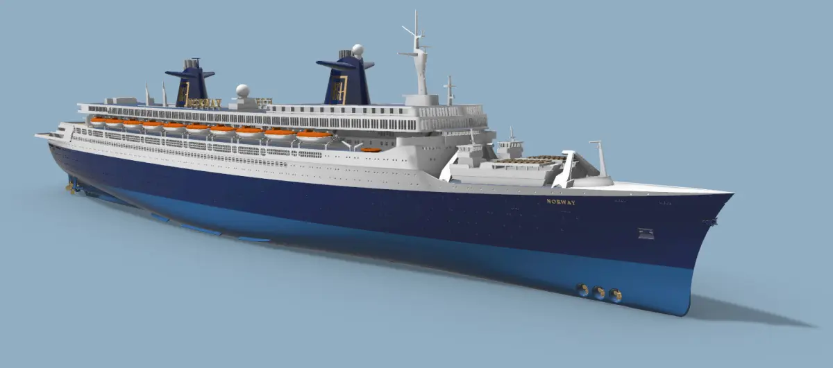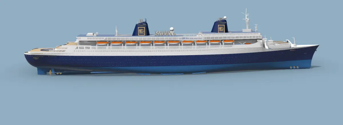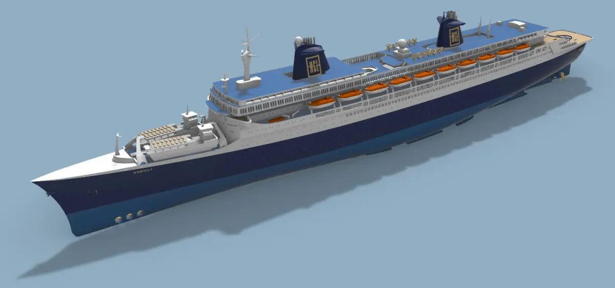 A detailed and accurate model of the S.S. Norway cruise ship as she appeared in her final years, at 1:1000 scale basis. Full hull and waterline versions are included and, as usual, easily printable at larger or smaller scales!