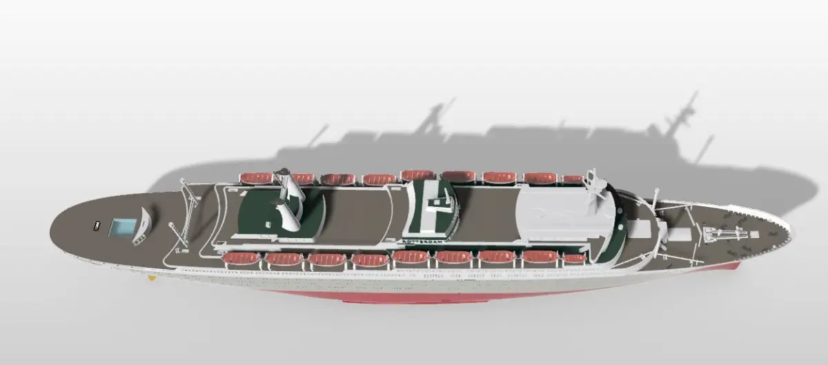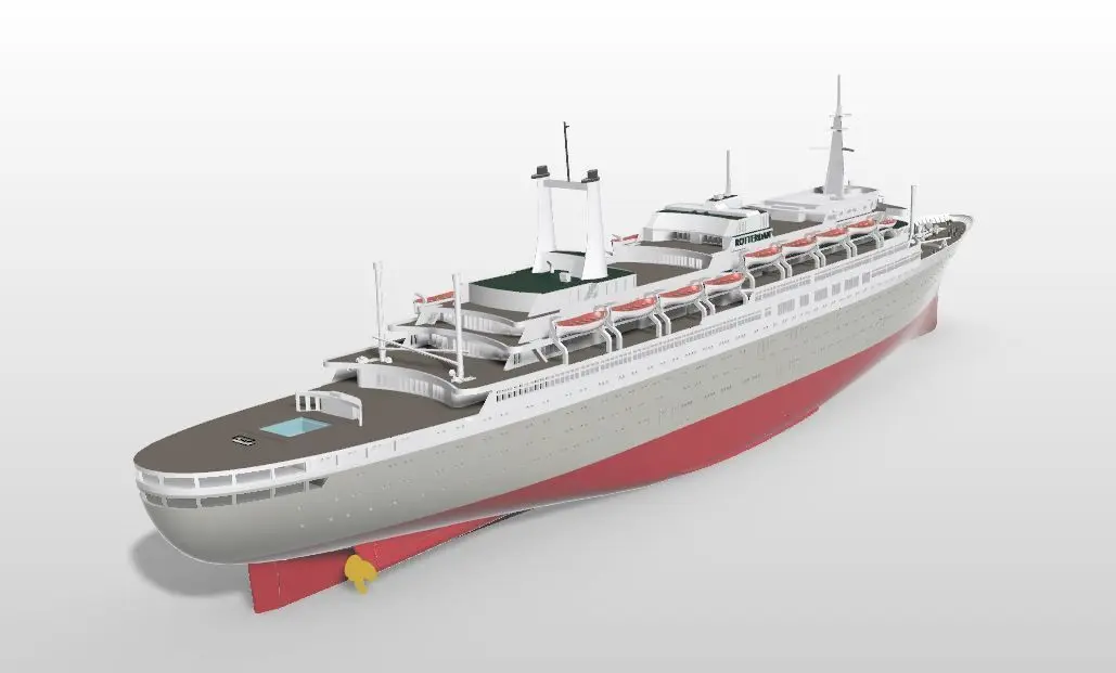 A detailed and accurate model of the Dutch ocean liner SS Rotterdam V at 1/1000 scale (but it's entirely possible to print it at a bigger or smaller scale). She is one of the last preserved classic liners, now a hotel in Rotterdam, Netherlands. Full hull and waterline models included.