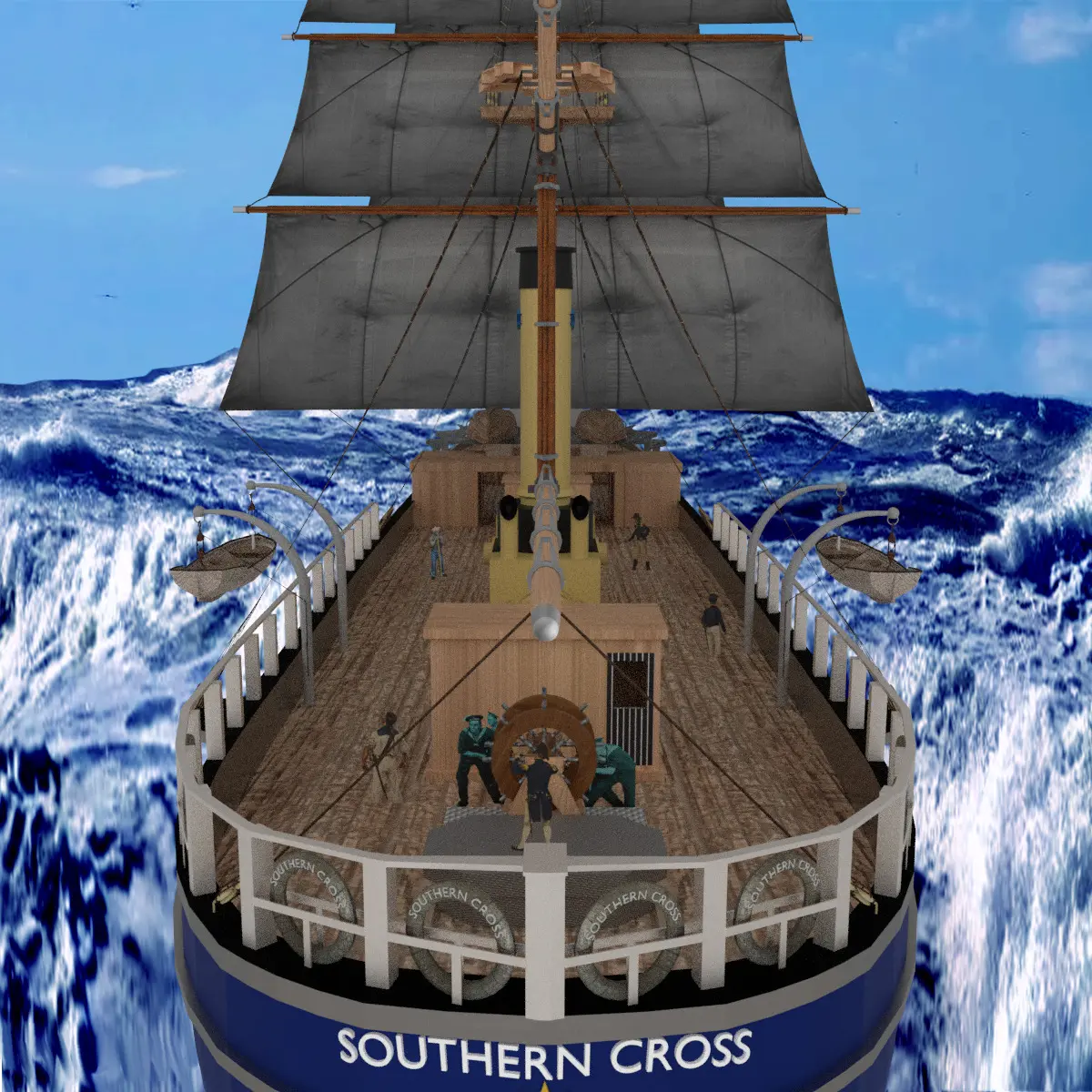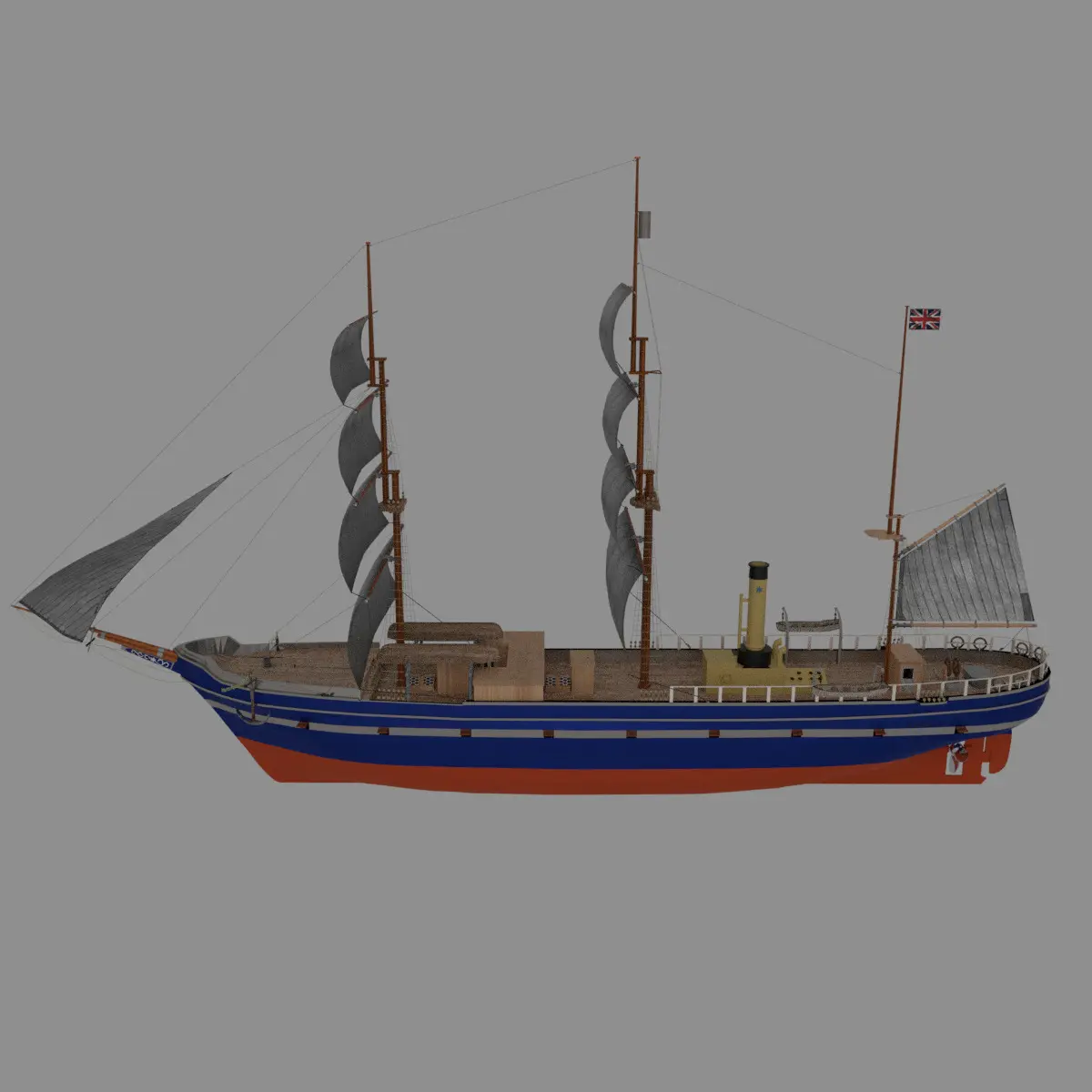 Expedition ship SS Southern Cross was used as a British Antarctic Expedition vessel in 1898–1900. She was built in Norway in 1886 as whaling ship Pollux. In 1898 a British publisher purchased the Pollux barque for Antarctic exploration. Renamed the Southern Cross, the new owners retrofitted the vessel with auxiliary steam power. The vessel encountered an intense blizzard off the Southwest coast of Newfoundland. It was last heard from during the storm on March 31, 1914 but both vessel and crew were subsequently lost.-This model is suitable for use in any Blender 4.4.3 or later version scene or animation.-This model file contains 95 objects.-This model contains only node color and textures.-All preview images are rendered with Cycles-The surrounding background and onboard figures in picture 2, 4, and 5 not included.-No Photoshop or other compositing software used after being rendered. Product is ready to render out-of-the-box.