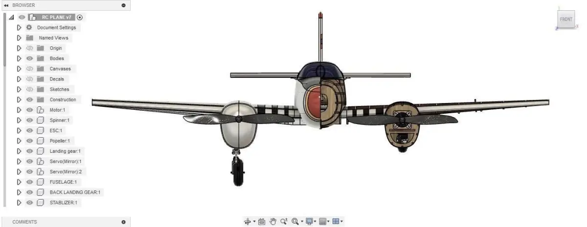 Aicraft Name: ST-1 -Material: Balsa Wood -Twin Brushless Motors-Wingspan: 1.2m-Retractable Landing Gear-PH Airforce Decals-Made in Fusion 360