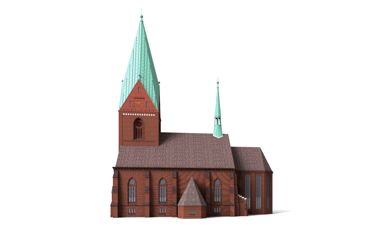 Construction of the Nikolai Church began shortly after the city was founded by Adolf IV of Schauenburg and Holstein around 1242. One hundred years later, the Gothic hall was rebuilt on the model of the Petrikirche in Lübeck and, with a long choir, was completed as a brick hall church with a three-aisled, almost square nave and a single-aisle choir. At the beginning of the 16th century, the tower was integrated into the building by the addition of the Council and Rantzau Chapels.