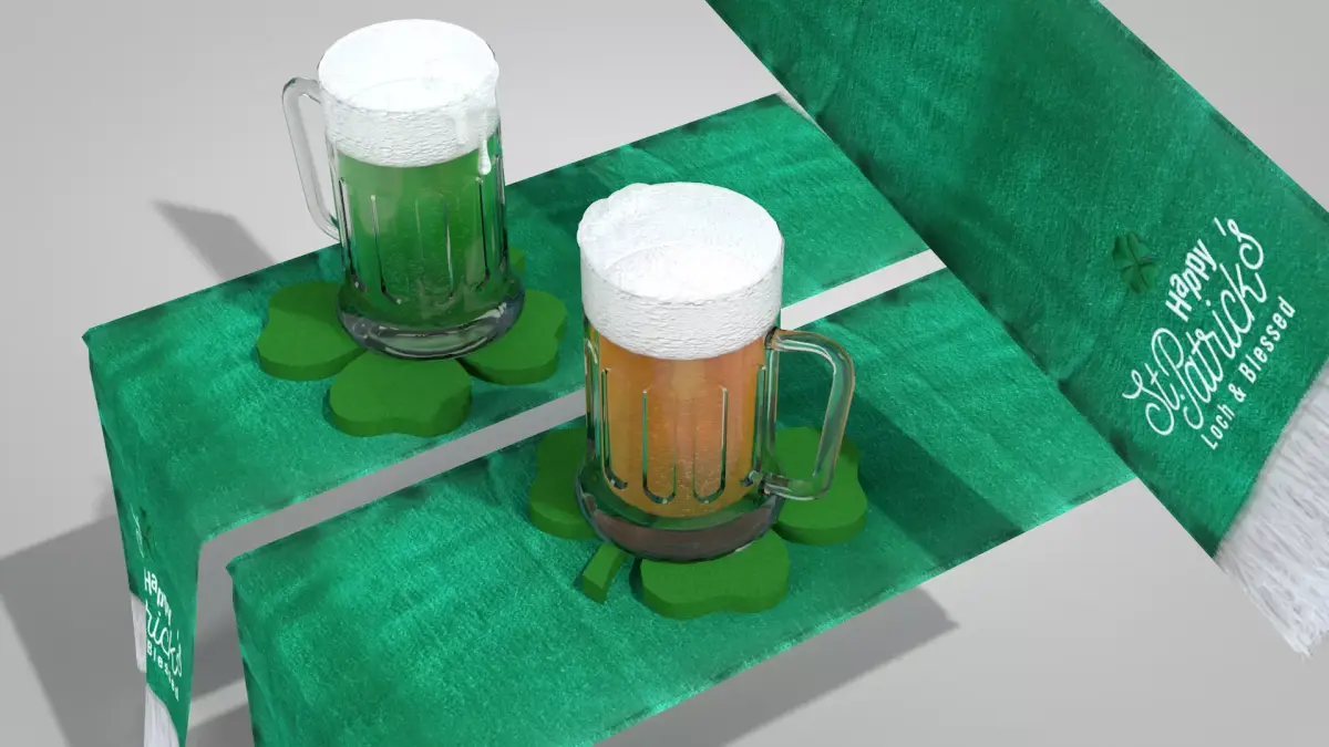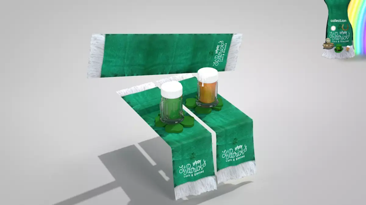 St. Patrick's Table Decoration consists of two beer mugs, two folded scarves on the table, two beer candies, and an original scarf.Made in Cinema4D R19 and exported to dae, fabx, obj, stl, blend, and glb files.St. Patrick's Table Decoration has its textures in PBR with 2k UV mapping.I hope you like it and that it's useful in your setting.Thank you for visiting, RenatoDalle