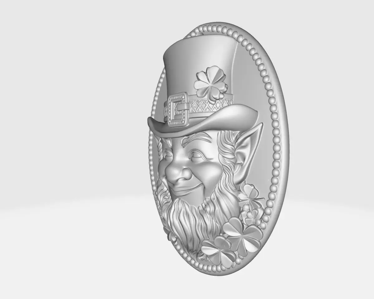 Bring a little Irish luck to your space with this detailed St Patrick’s Day leprechaun relief! This 3D printed design features a smiling leprechaun with a classic top hat, textured buckle, and shamrock accents inside an elegant oval frame with a beaded border. A small hanging loop at the top makes it easy to display on a wall, door, shelf, tiered tray stand, or as party décor for March celebrations.