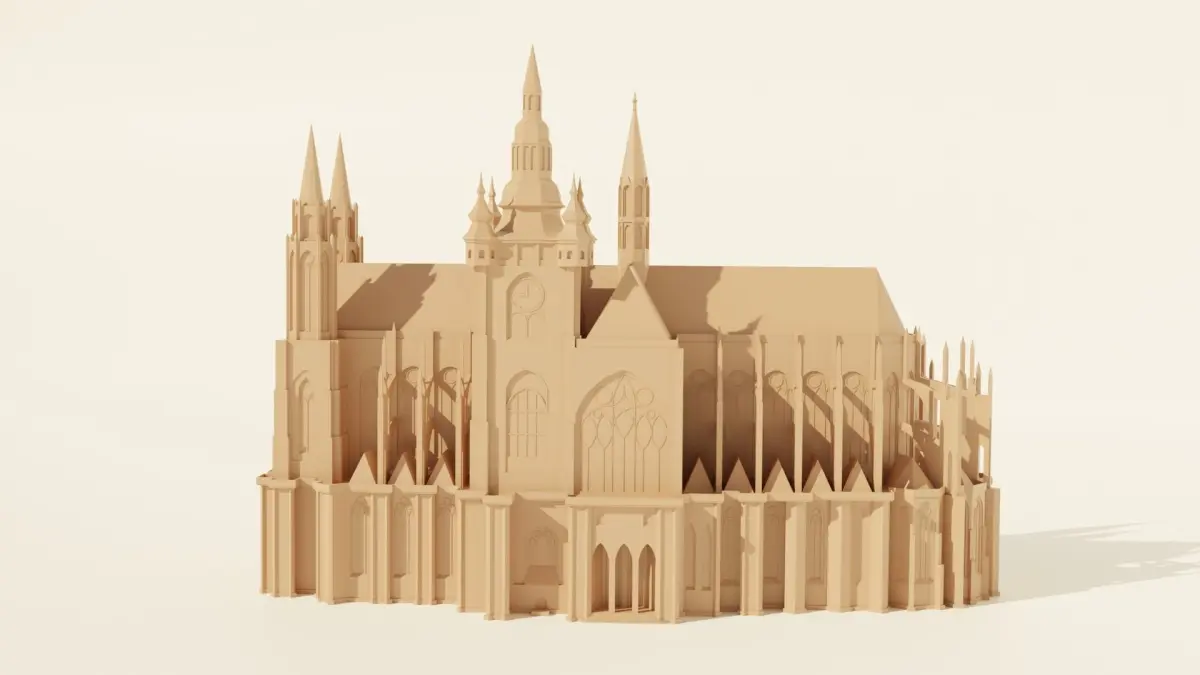 St. Vitus Cathedral. Prague, Czech Republic.The metropolitan cathedral of saints vitus, wenceslaus and adalbert is a roman catholic metropolitan cathedral in Prague, the seat of the archbishop of prague. Until 1997, the cathedral was dedicated only to saint vitus, and is still commonly named only as St. Vitus Cathedral.The model can be used for 3D printing. The model is made in full size, so that you yourself can reduce it to the scale you need.