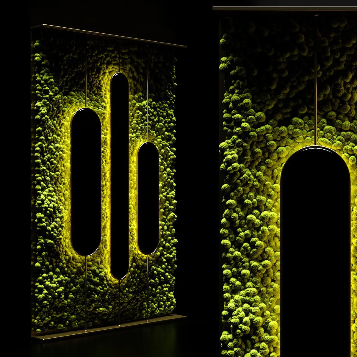 Stabilized moss in brass surround with decorative mirrors with LED backlight