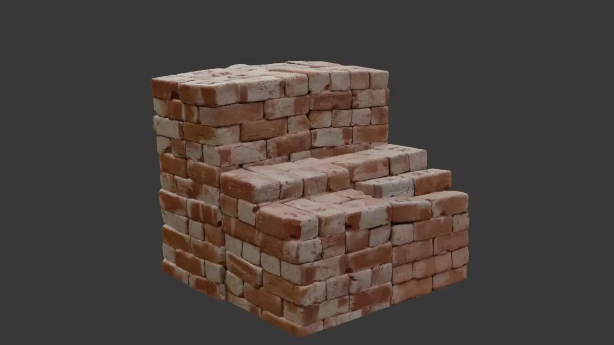 Highly detailed 3D scan of a stack of weathered bricks with a worn, uneven appearance. Ideal for construction scenes, urban environments, or architectural visualization. The model is provided in multiple formats (BLEND, FBX, OBJ, GLB, USD, STL) and includes 4K PBR textures for seamless integration in any pipeline.