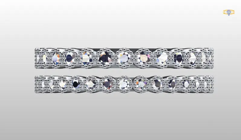Stackable Bead Bands - 2 diamond sizesFinger Size 7(17) 1.50mm on thin band - approx 0.21cts(15) 1.90mm on wide band - approx 0.38cts