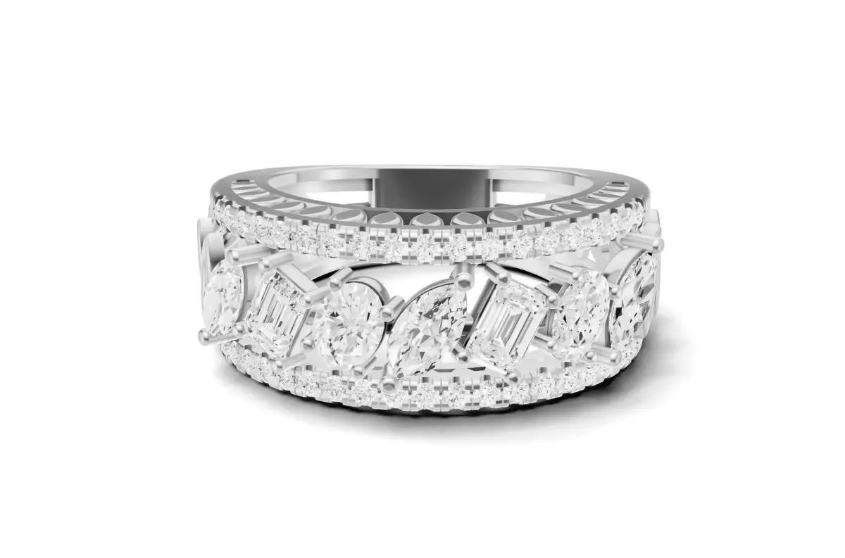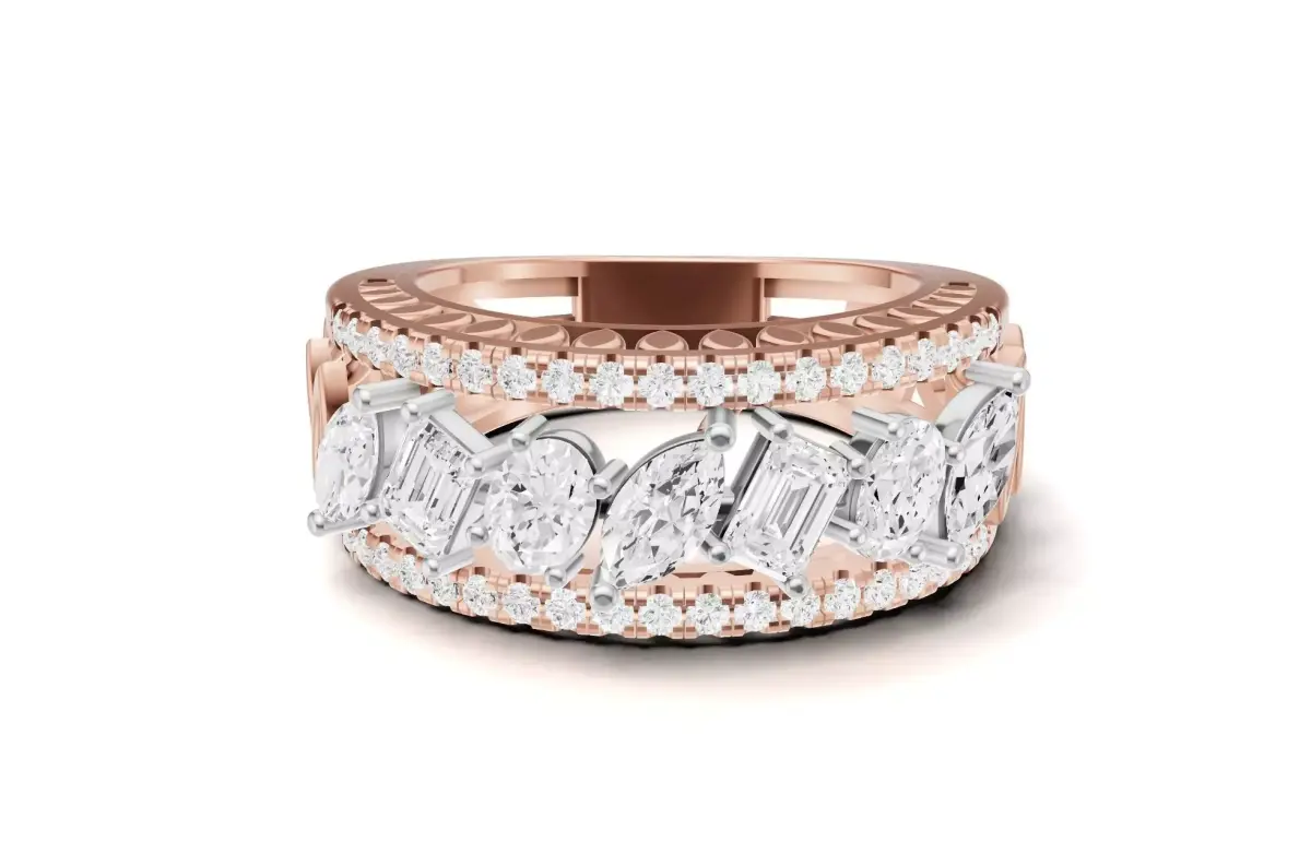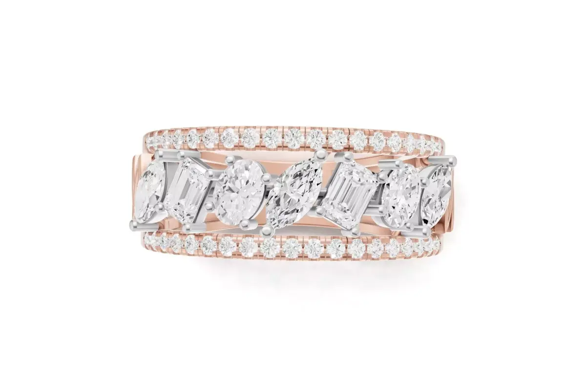 Stackable Marquise Emerald Oval and Pave Diamond Engagement Band 3D print model