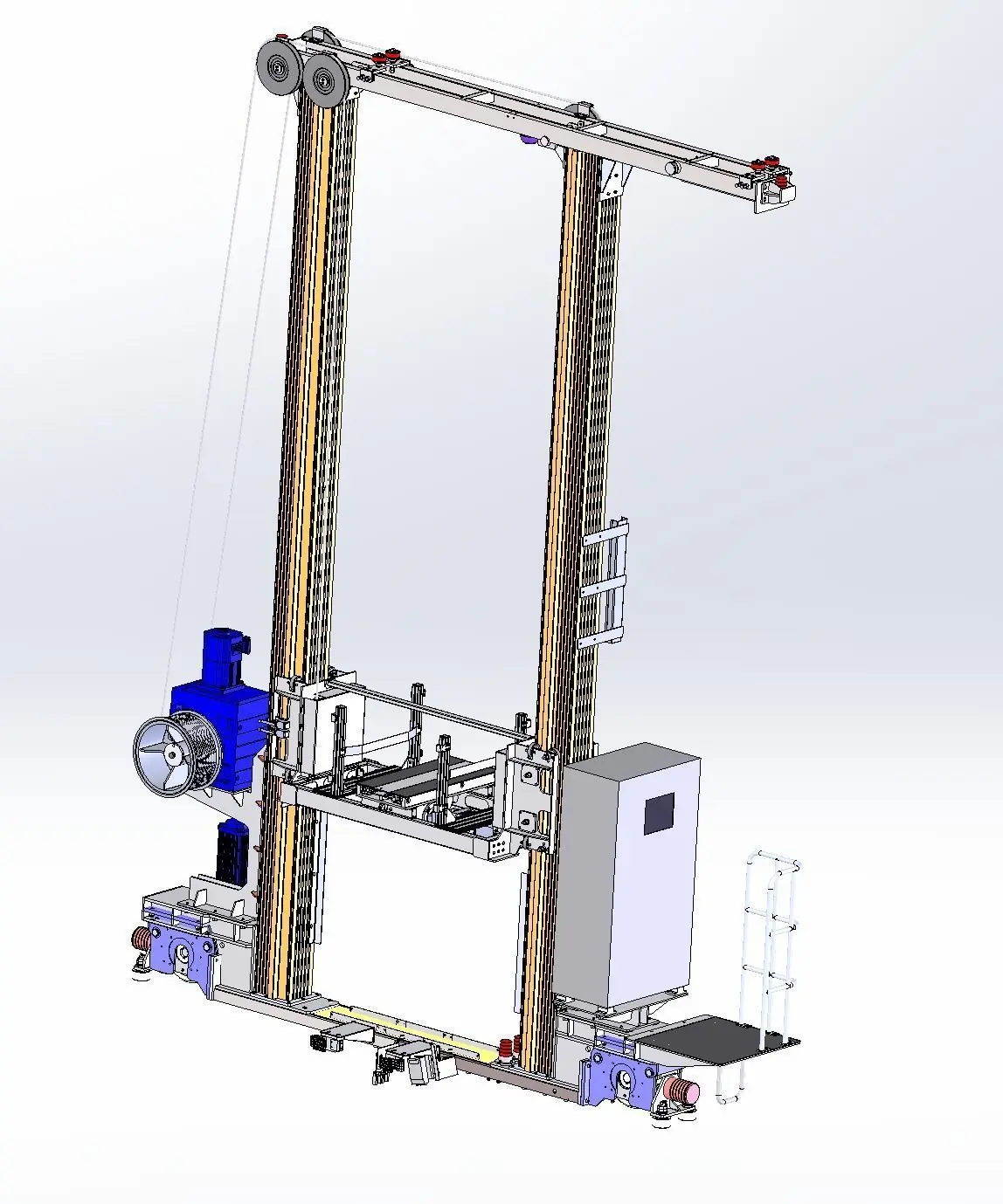 Stacker crane is refers to using goods fork or string rod as the fetch device, in the place such as warehouse, workshop grab handling and storage unit or from the top shelf put the special crane it is a kind of storage equipment equipment used in the steel wire hoisting mechanism, chain drive mechanism, using the long guide rail positioning, which can realize fast in all directions, the movement of the high load, is a very good piling equipment.