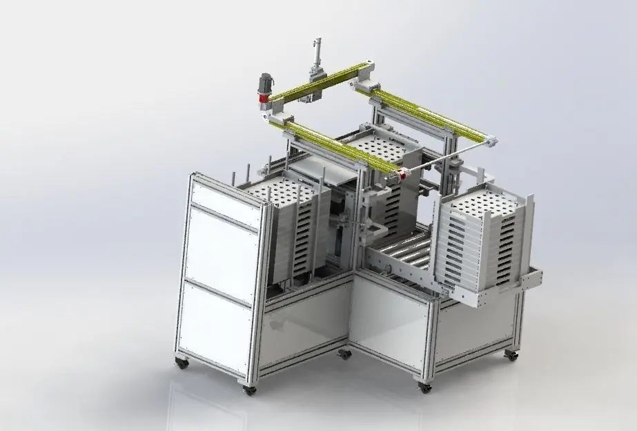 The machine drives the stacking mechanism through the lead screw, and the whole tray is loaded and unloaded to form the overall stacking mechanism.Mechanism include