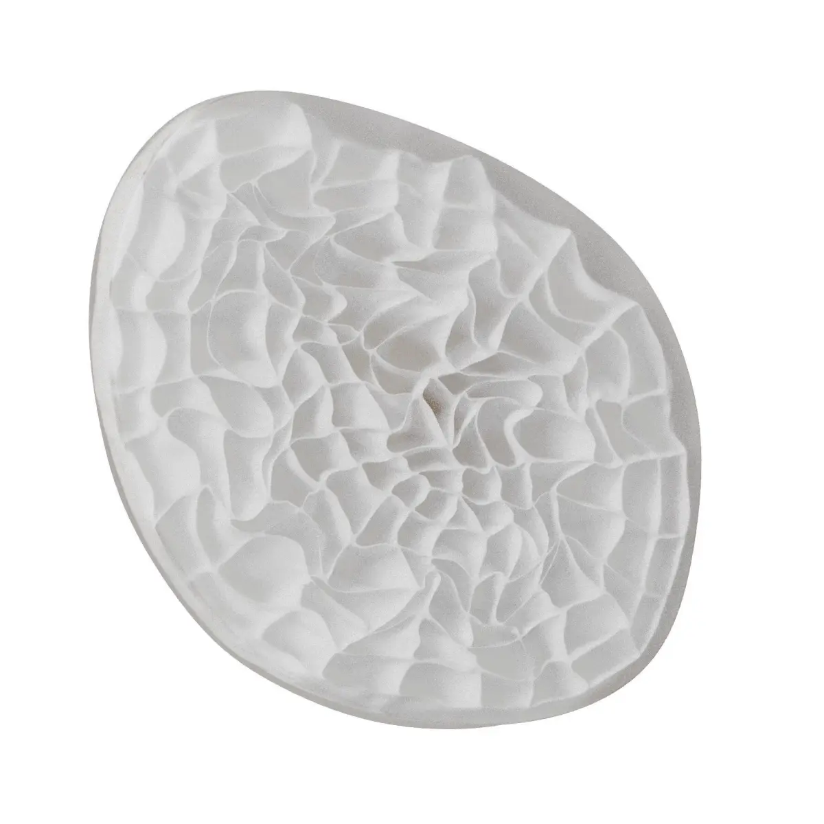 In GS’s proprietary glass fabrication process, rods of borosilicate glass are broken. The glass fragments are meticulously arranged in the kiln bed to achieve a randomized pattern, then fired and cooled for a week. This process yields a distinctive mottled pattern of milky translucent veils and transparent glass windows. The slab is then polished and cut to size with a water jet. Because the glass is handmade, each tabletop takes three weeks to carve and polish, a process that is impossible to duplicate, making each Mura table unique. The Mura side table makes use of the offcut glass used to produce the Mura low table.More DetailsCreator: STACKLAB (Workshop/Studio)Dimensions: Height: 22 in (55.88 cm)Width: 14 in (35.56 cm)Depth: 14 in (35.56 cm)