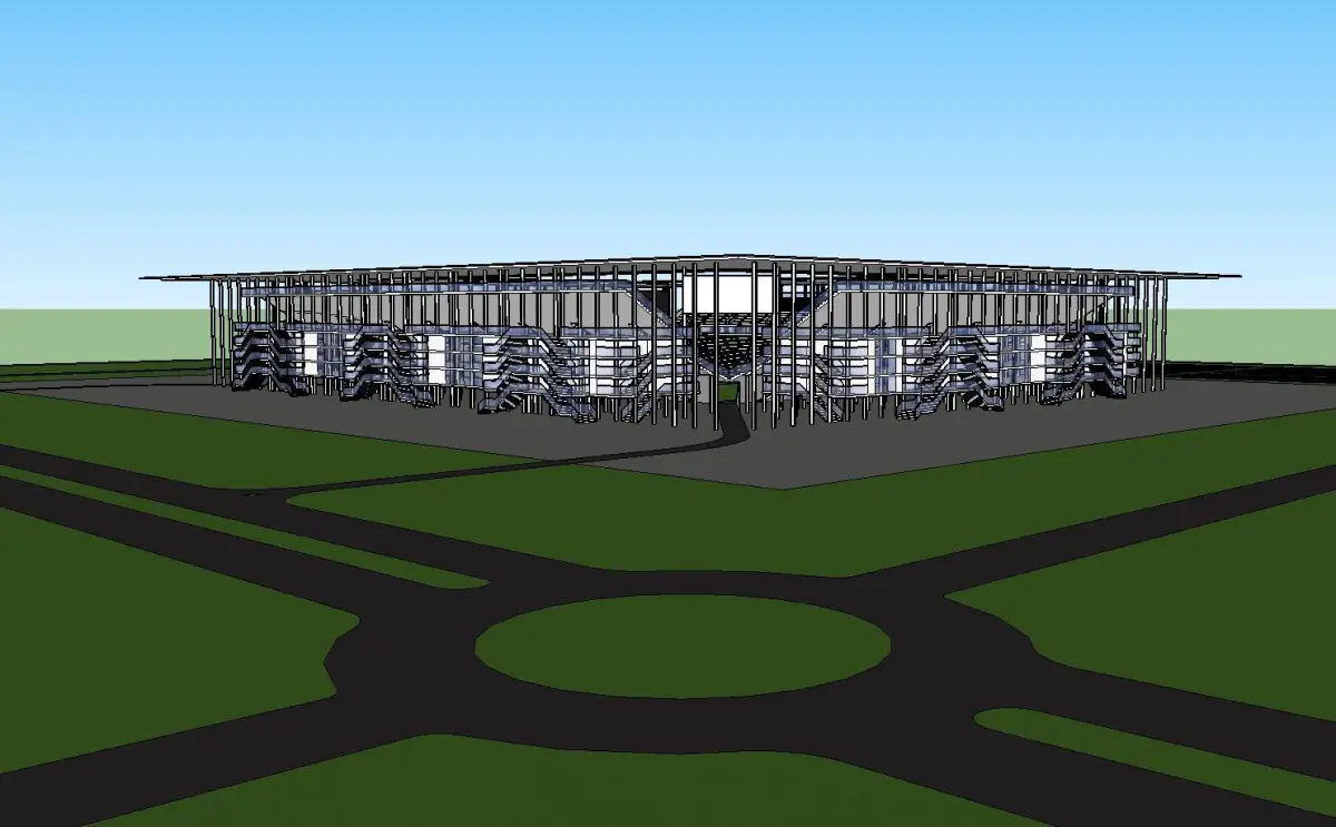 Stadion building in middle of field 3D model
