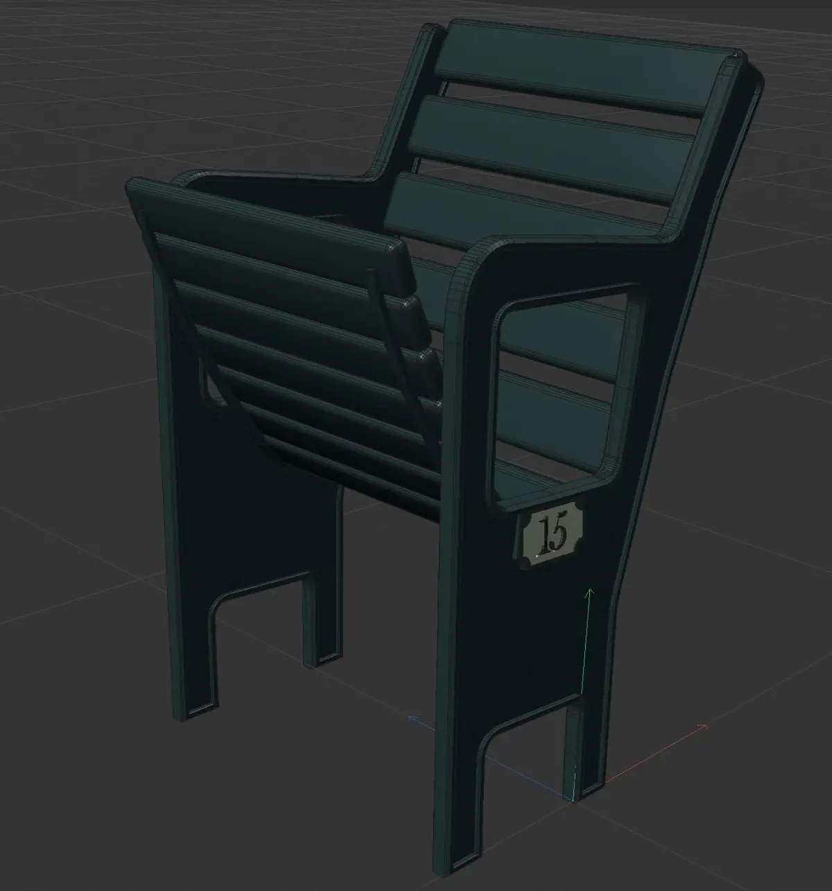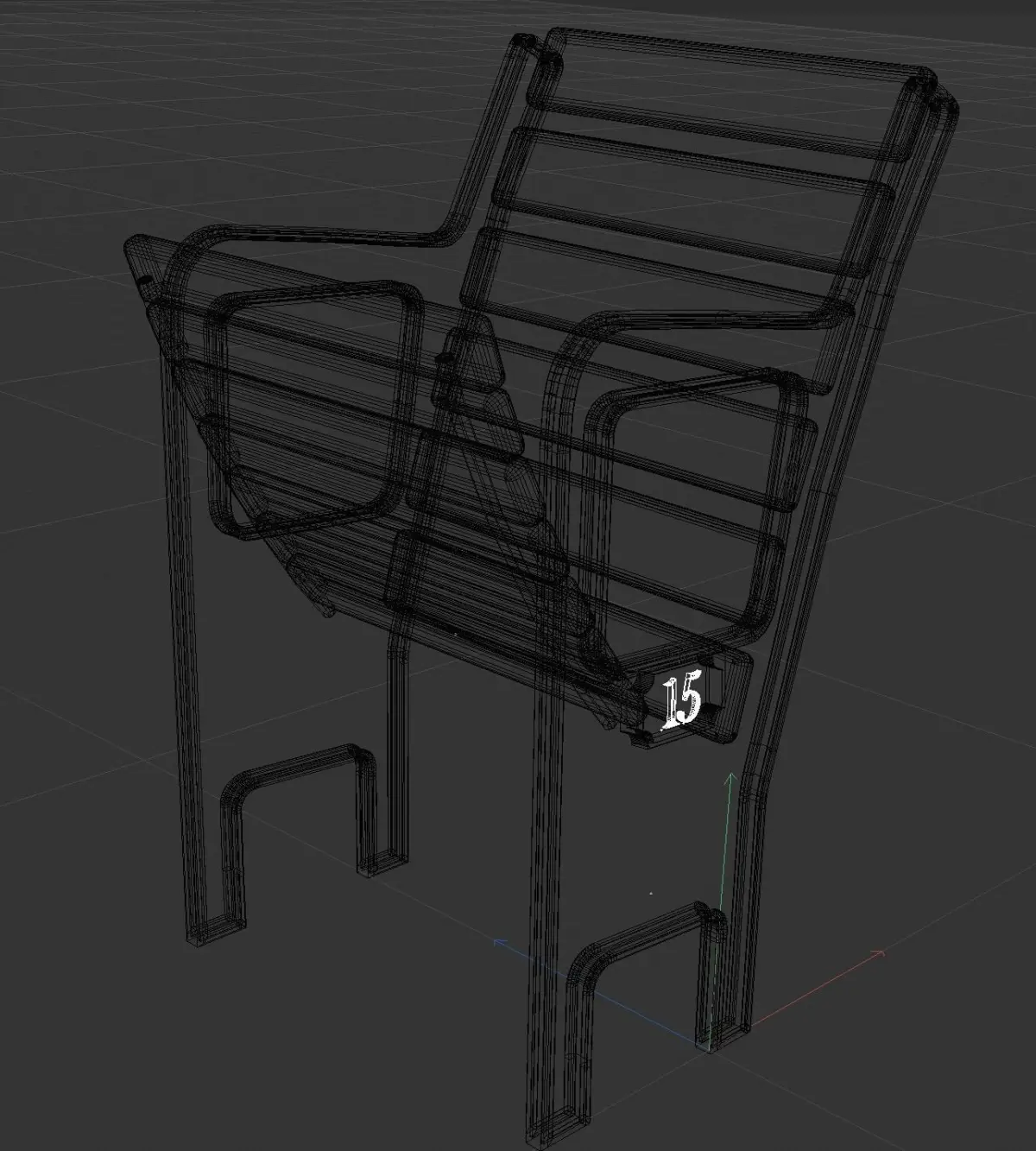Individual folding stadium chair. Can be used individually or repeated into rows/sections.