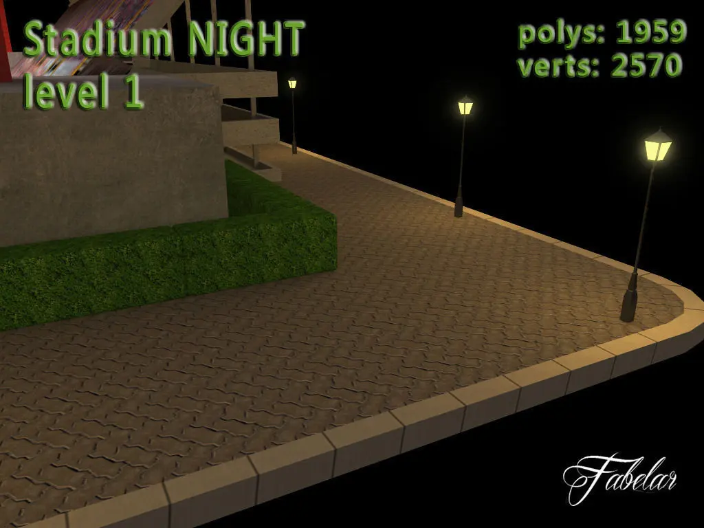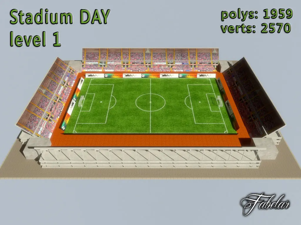 Stadium level 1 lowpoly 3D model. Vray, scanline, multiple import formats. Nighttime and Daylight settings.