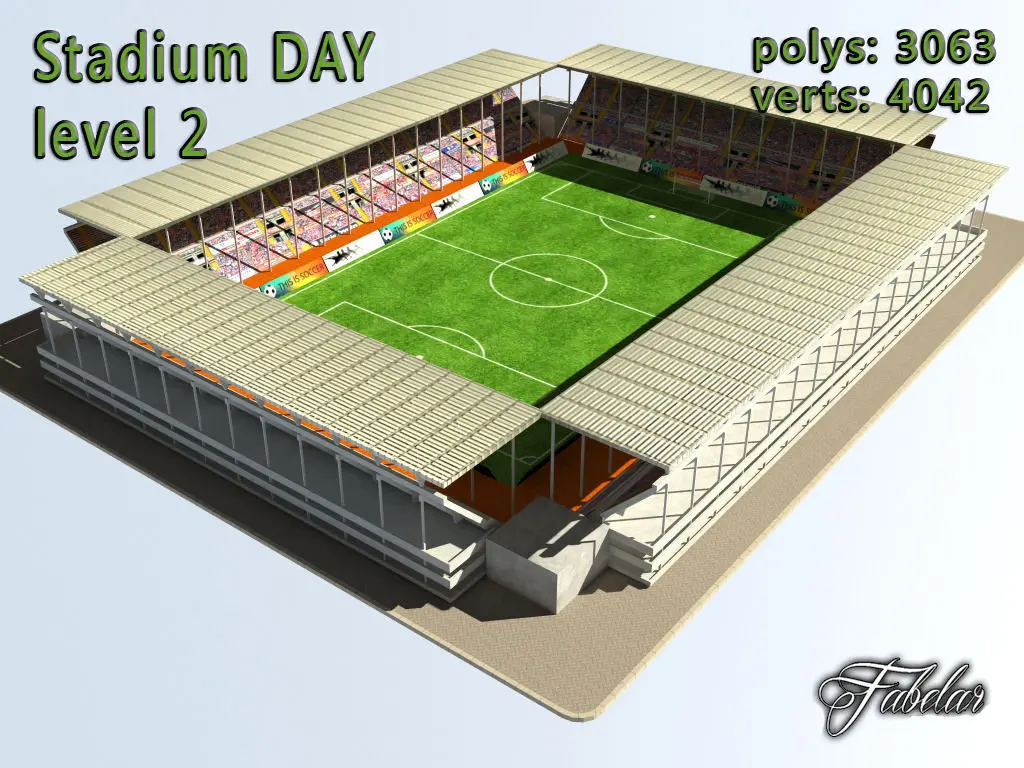 Stadium level 2 lowpoly 3D model. Vray, scanline, multiple import formats. Daylight settings.