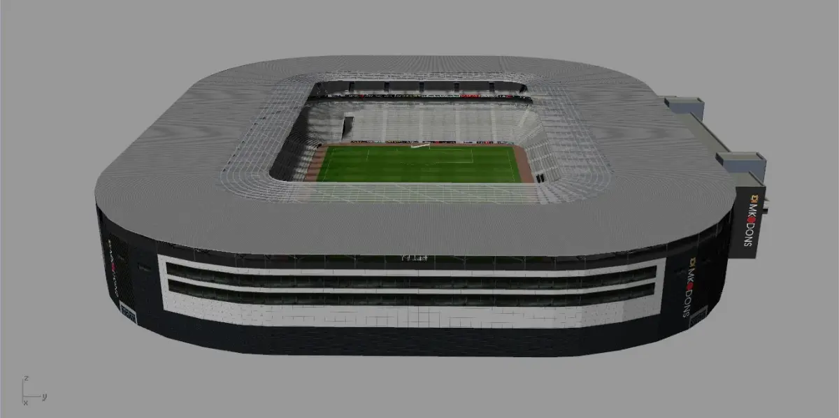 Hi, there! Today I present you Stadium MK, home ground of MK Dons.The stadium is created for a PC/video game (EA sports FIFA for example) . The model is created in Rhinoceros 3D v5.0, but it's compatible with v4.0 as well. All railings and fencing are 2D images with transparency set. The model is optimized for any kind of computer and video games. Light structure and high quality of detailization. The following formats are exported with Rhino 3D v5.0: