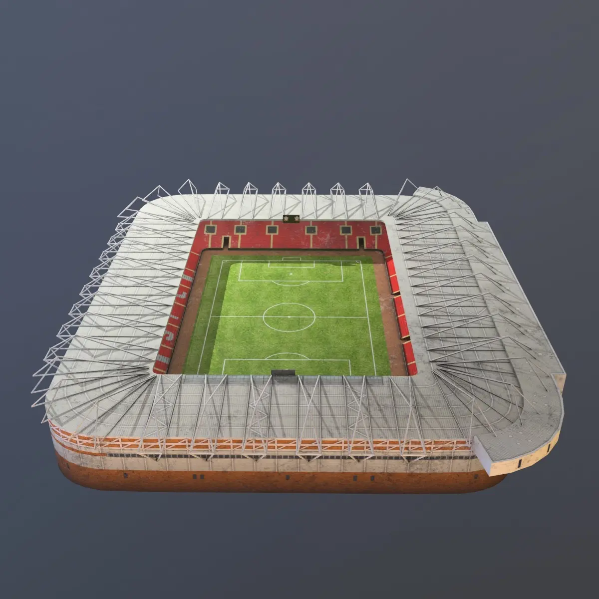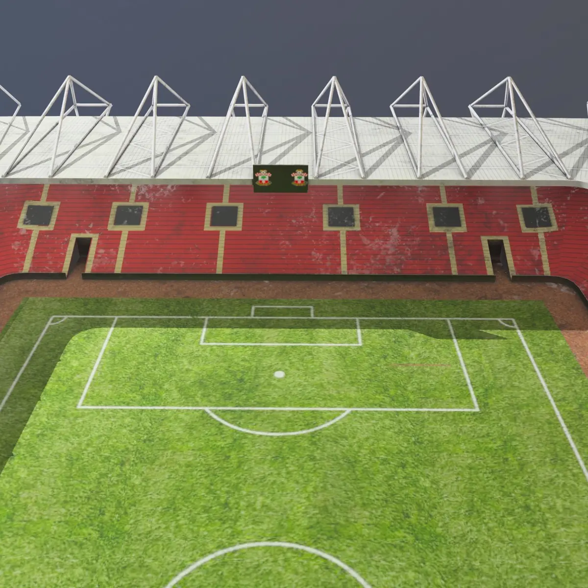 Low poly model of a St Mary's stadium, it is non-PBR with 4k resolutions. This is a low poly model with 1696 polys. This is an ideal opportunity to decorate your scene with an object that will be in other plans, and that would be seen from a long distance. All dimensions are by ratio 1:1. The model has 1 daylight mode and 1 night mode map.