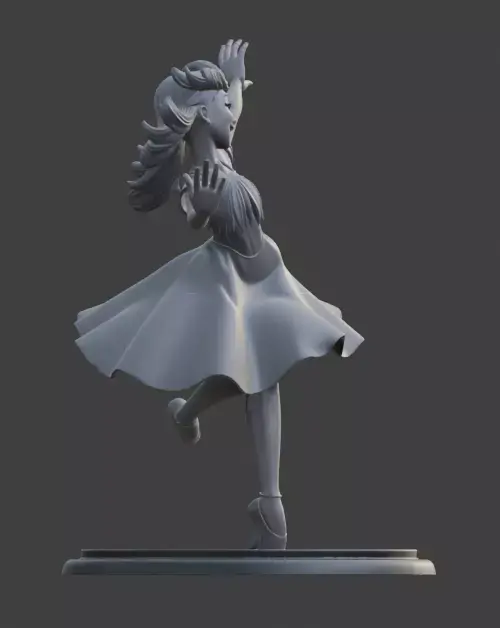 Tagsstage dancer, 3D figurine, stylized character, dynamic pose, flowing dress, ballet shoes, digital sculpture, character archetype, original design, studio lighting