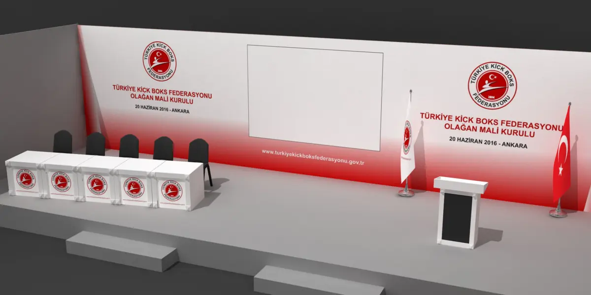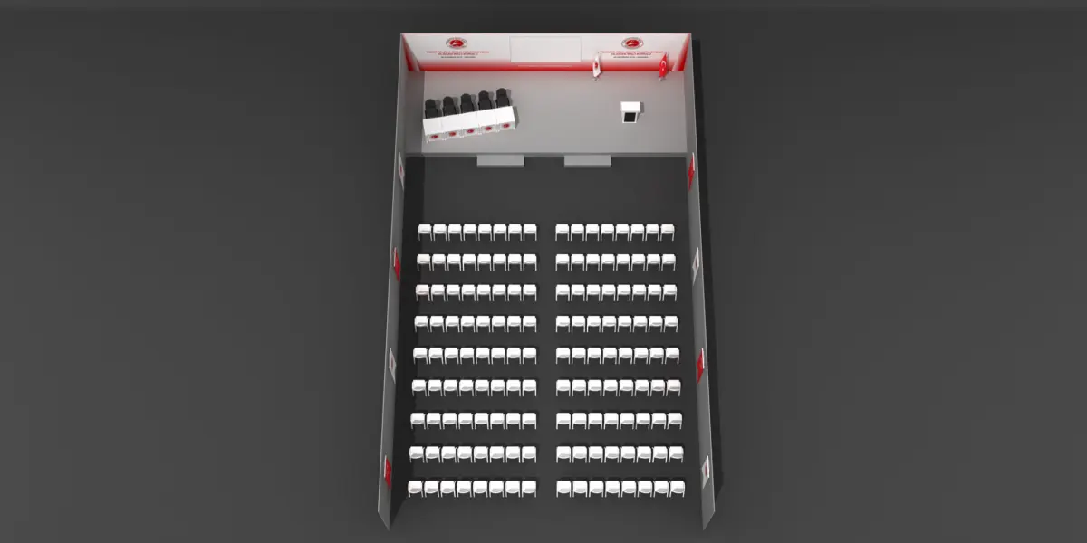 Stage Decor 50 with Chair Setup and Lectern Big Flag.