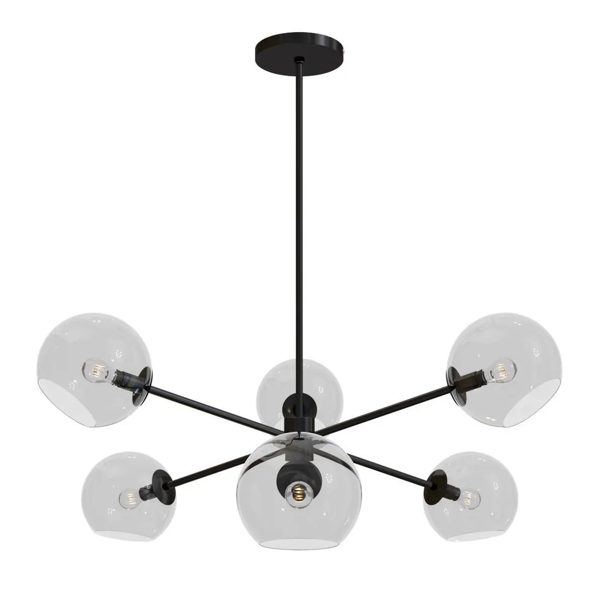 The Steel Frame Chandelier in a Dark Bronze Finish with Six Clear Glass Shades is an elegant and versatile lighting fixture that brings both modern and industrial elements to your home decor. The sleek, durable steel frame, finished in a rich dark bronze, offers a striking contrast to the clear glass shades, providing a balance between style and functionality. Each glass shade allows the light to shine freely, creating a bright and inviting ambiance while showcasing the beauty of the bulbs inside.