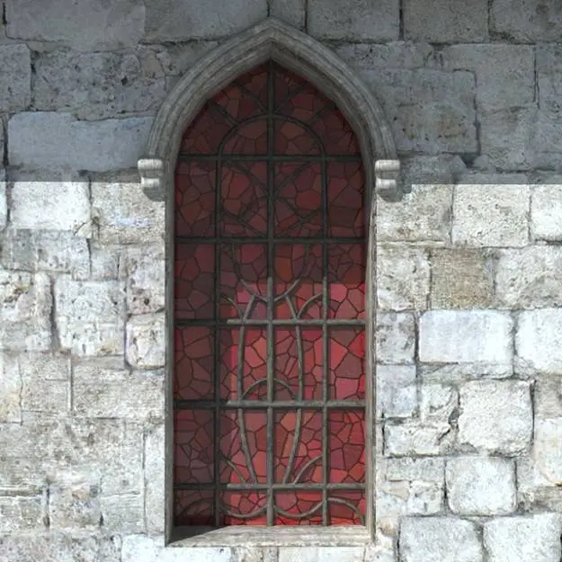 High detailed stained glass window subdivision model. Vray materials and textures included (diffuse, normal maps, specular, opacity) Suitable for both long range and close renderings. Wall also included. Available in standard materials version and multiple formats.