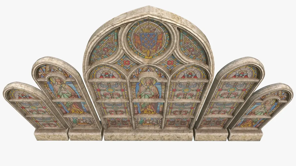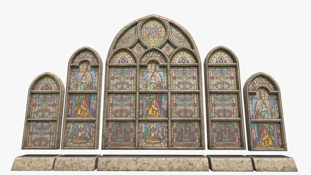 Game ready Pack,Highly realistic and detailed Stained Glass Windows fully textured, sculpted and rendered with Physical based rendering (PBR) - Shown images have been rendered in Substance Painter (Iray).The model contains lods. Detailed information about the lots in the screenshots and also in the description below.The set contains 5 unique window models as well as 3 unique border models.