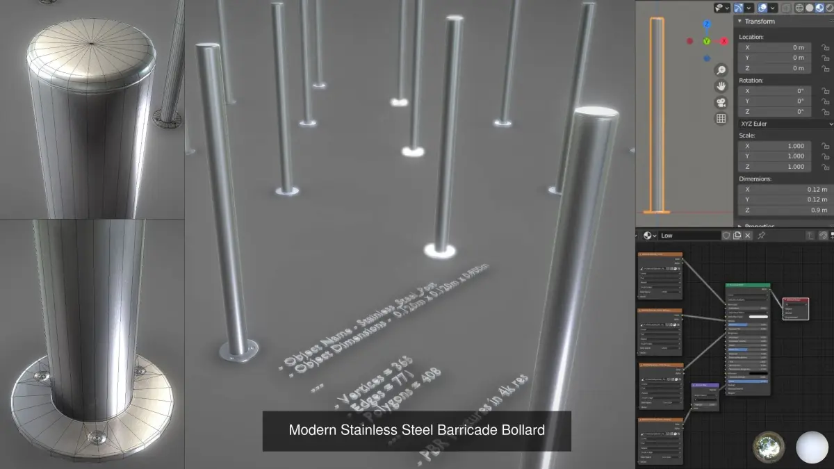 The high-poly version of the Stainless Steel Bollard.