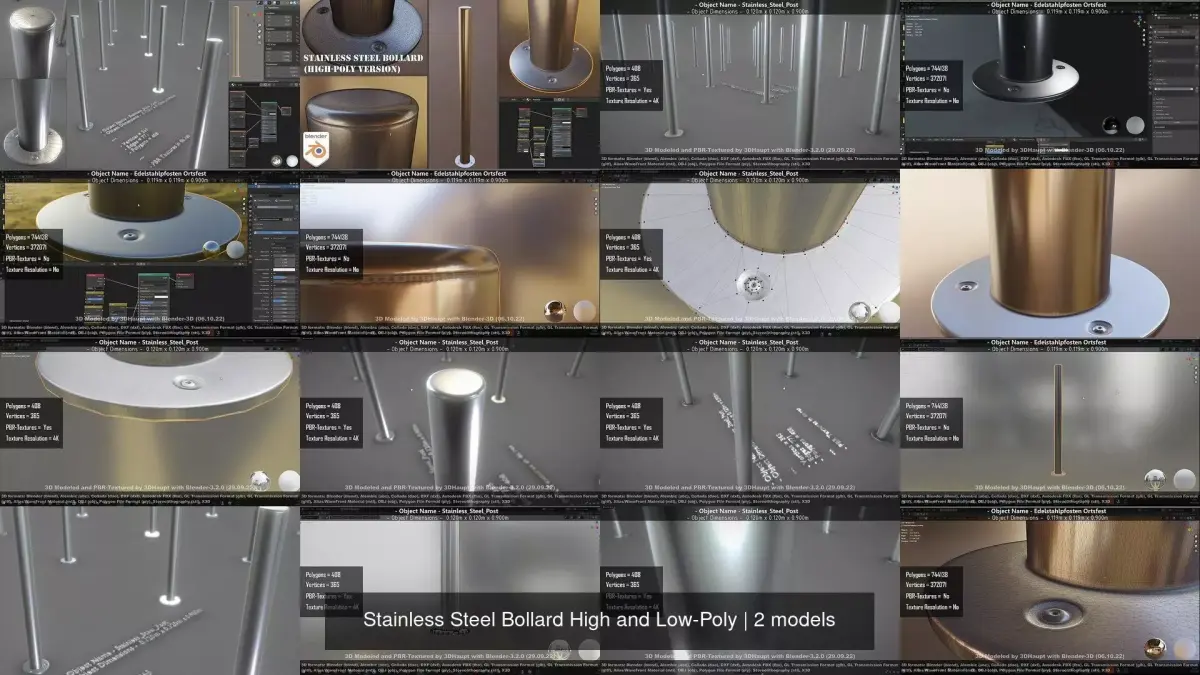 Stainless Steel Bollard High and Low-Poly.