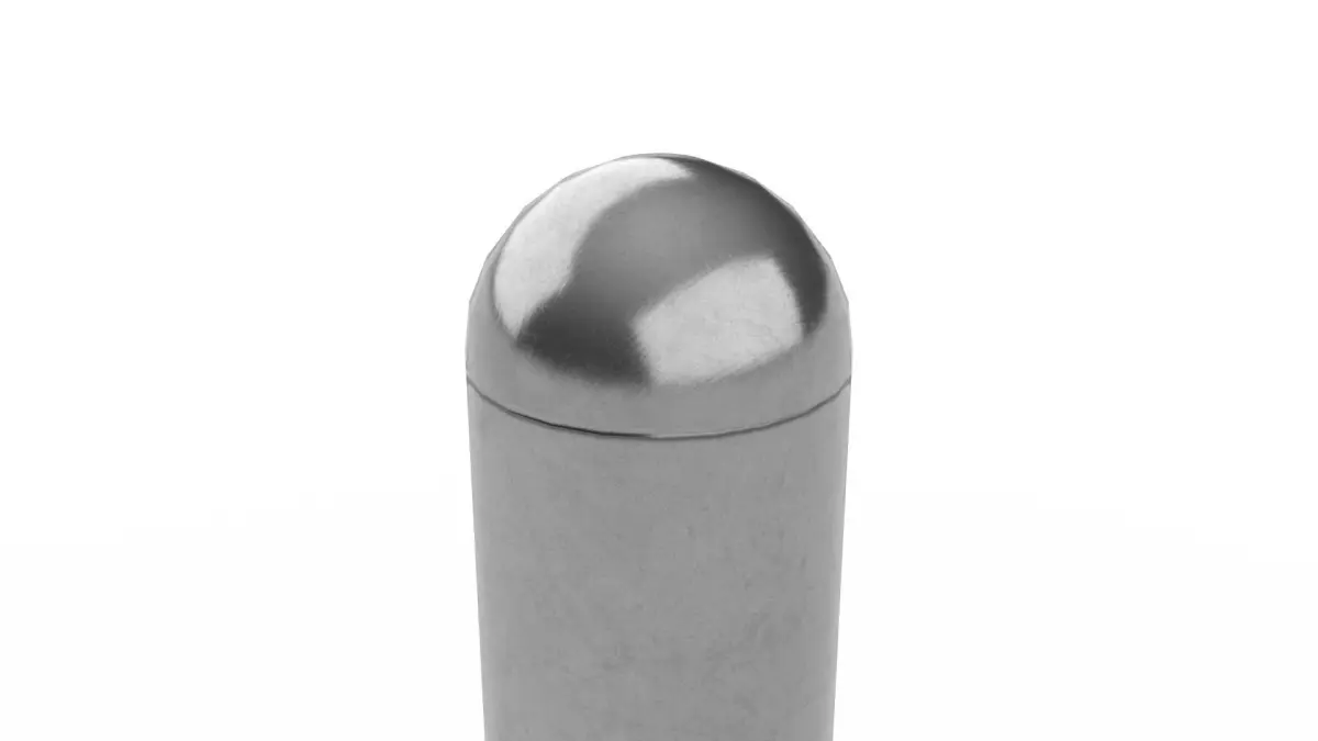 Classic stainless steel cylindrical bollard with polished dome top and ground mounting plate. Perfect for city or urban landscapes.