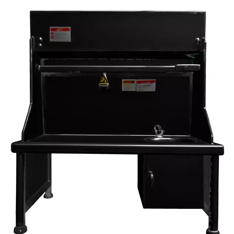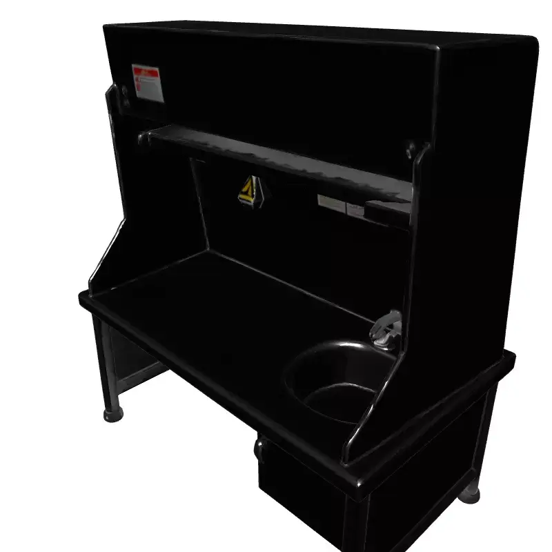 This is a meticulously crafted 3D model of a modern stainless steel industrial or laboratory sink unit, designed for high-quality renders and efficient real-time applications. The model features a robust workbench surface, an integrated small sink with a functional faucet, a practical overhead shelf for convenient storage, and a compact under-counter storage cabinet for supplies. The entire unit boasts a realistic brushed metal finish, complete with authentic-looking warning decals that significantly enhance its credibility and attention to detail, making it ideal for close-up shots. This versatile asset is perfect for a wide range of usage scenarios, including comprehensive architectural visualization projects for laboratories, hospitals, commercial kitchens, or industrial workshops where precision is key. It is also exceptionally well-suited for game development, providing realistic assets for modern, futuristic, or sci-fi environments, as well as for educational simulations and immersive AR/VR experiences focused on scientific or manufacturing themes. The model is carefully optimized to ensure efficient performance within real-time game engines and AR/VR platforms, featuring a balanced poly count that doesn't compromise visual quality. Simultaneously, it maintains a high level of detail suitable for stunning static renderings and cinematics. Key features include a clean and efficient quad-based topology, fully UV unwrapped surfaces to ensure easy and accurate texture application, and it is meticulously prepared for seamless integration with PBR (Physically Based Rendering) texture workflows to achieve truly photorealistic visual results across various lighting conditions. PBR maps for albedo, roughness, metallic, and normal details are typically included or easily generated for maximum realism. The model supports a wide array of common 3D file formats, including GLB, OBJ, STL, ABC, DAE, FBX, USD, and PLY, ensuring broad compatibility and ease of use across virtually all major 3D software and rendering platforms. This extensive format support ensures maximum flexibility for any project requirement, from professional architectural renderings to interactive game environments.