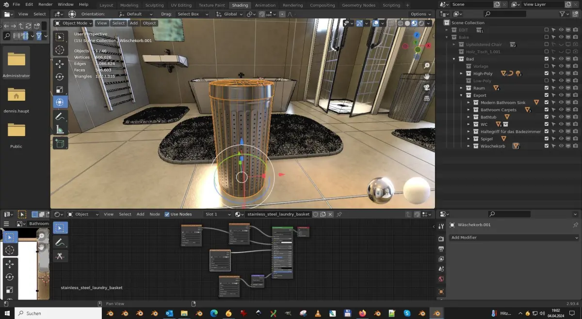 Here is a pbr textured (4k) and lowpoly stainless steel laundry basket. Ideal for real-time applications or modern computer games.