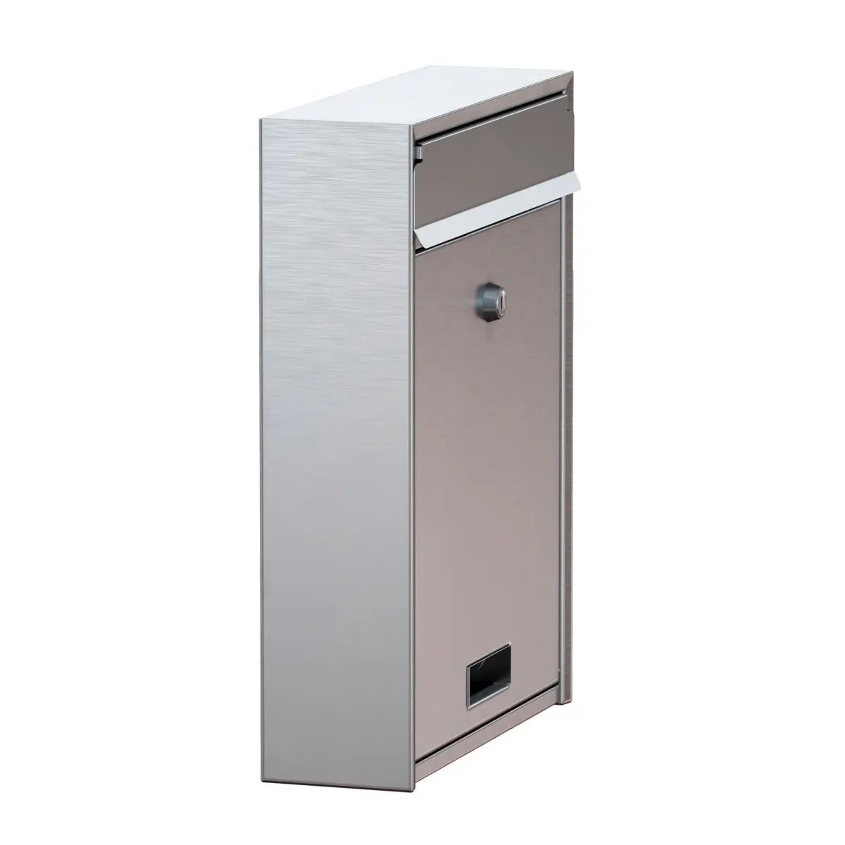 Metal mailbox made of stainless steel and chrome steel with a lock.