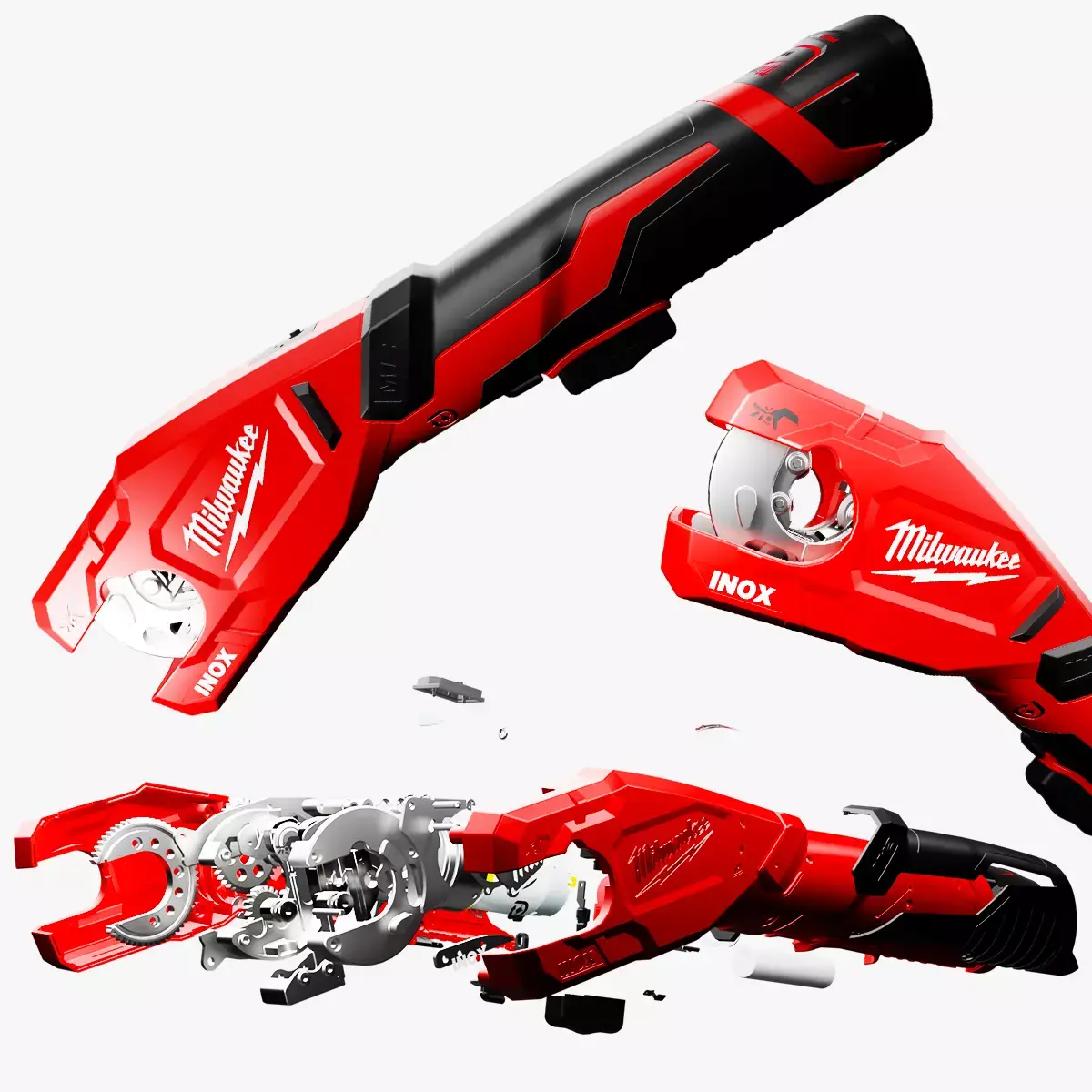 Crafted in Blender 5.0, this high-quality 3D asset showcases a detailed industrial pipe cutter, inspired by Milwaukee's INOX stainless steel cutting tool.
