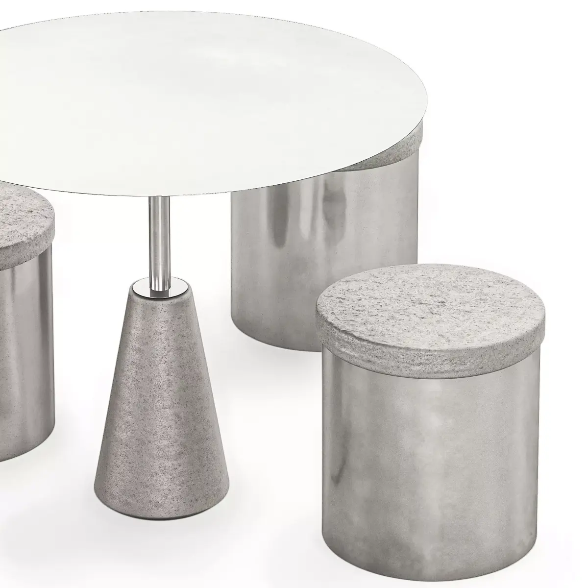 Table source: http://artemest.com/products/steel-and-white-stone-side-table-Chair