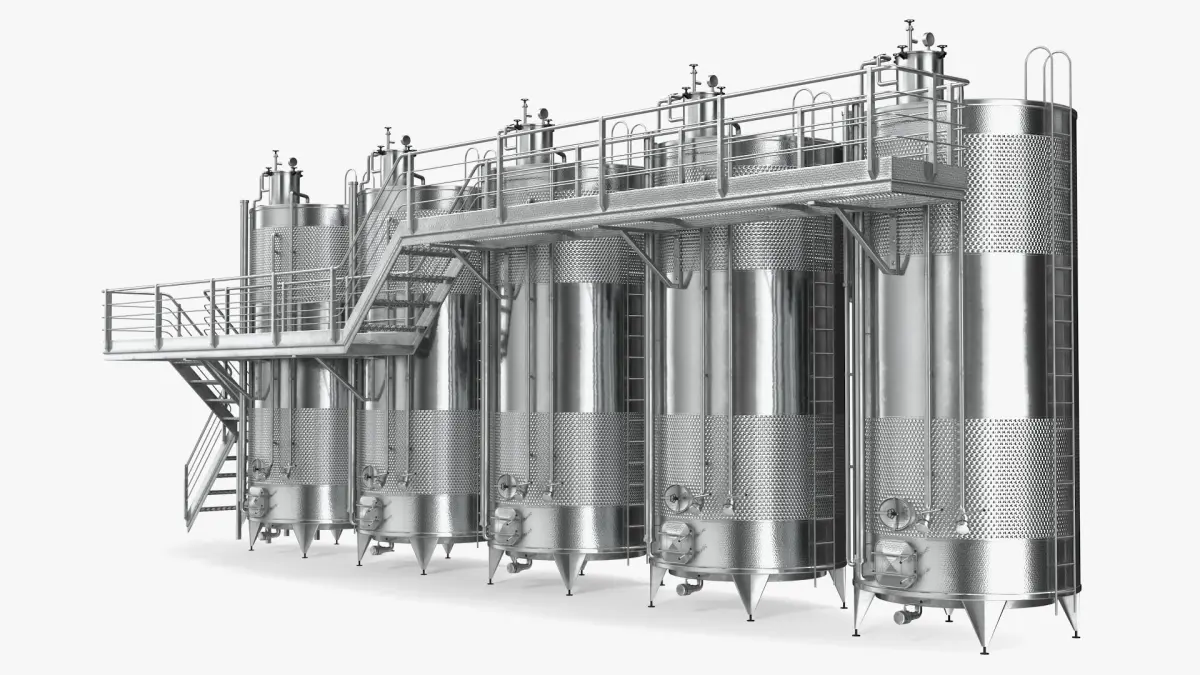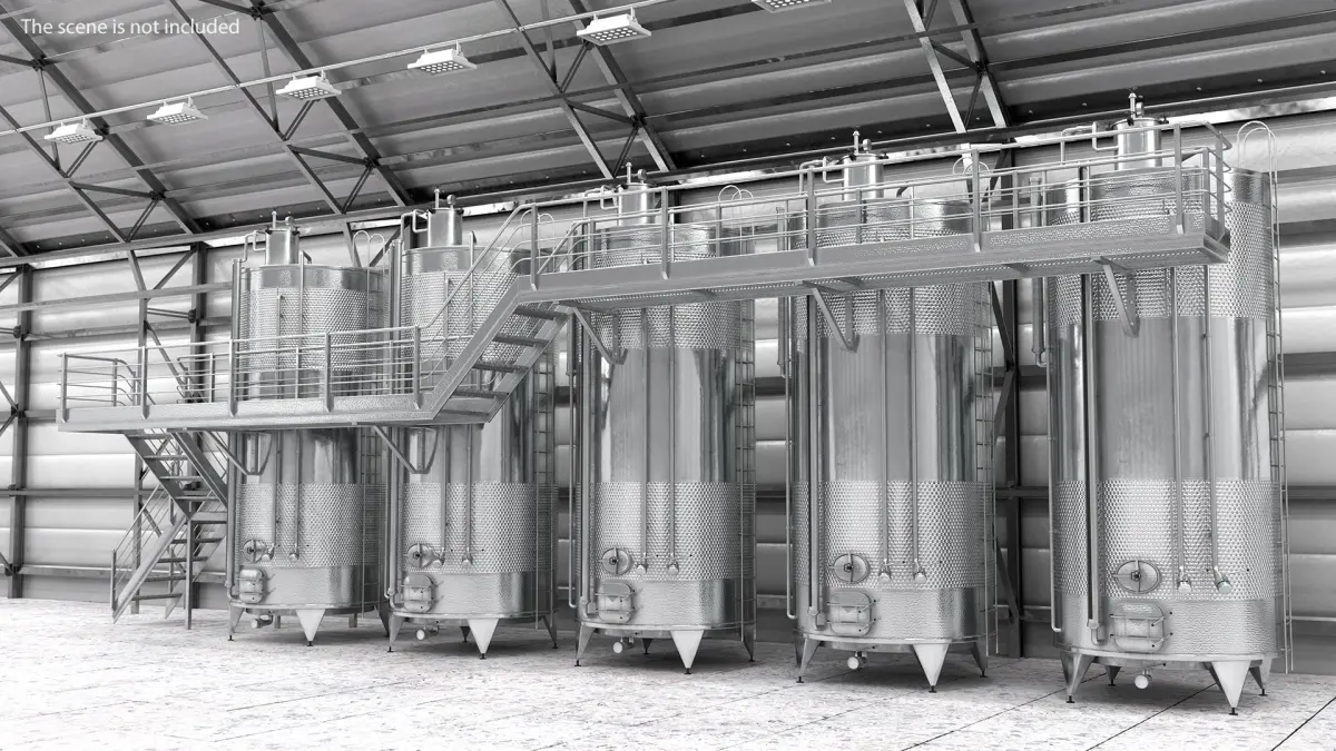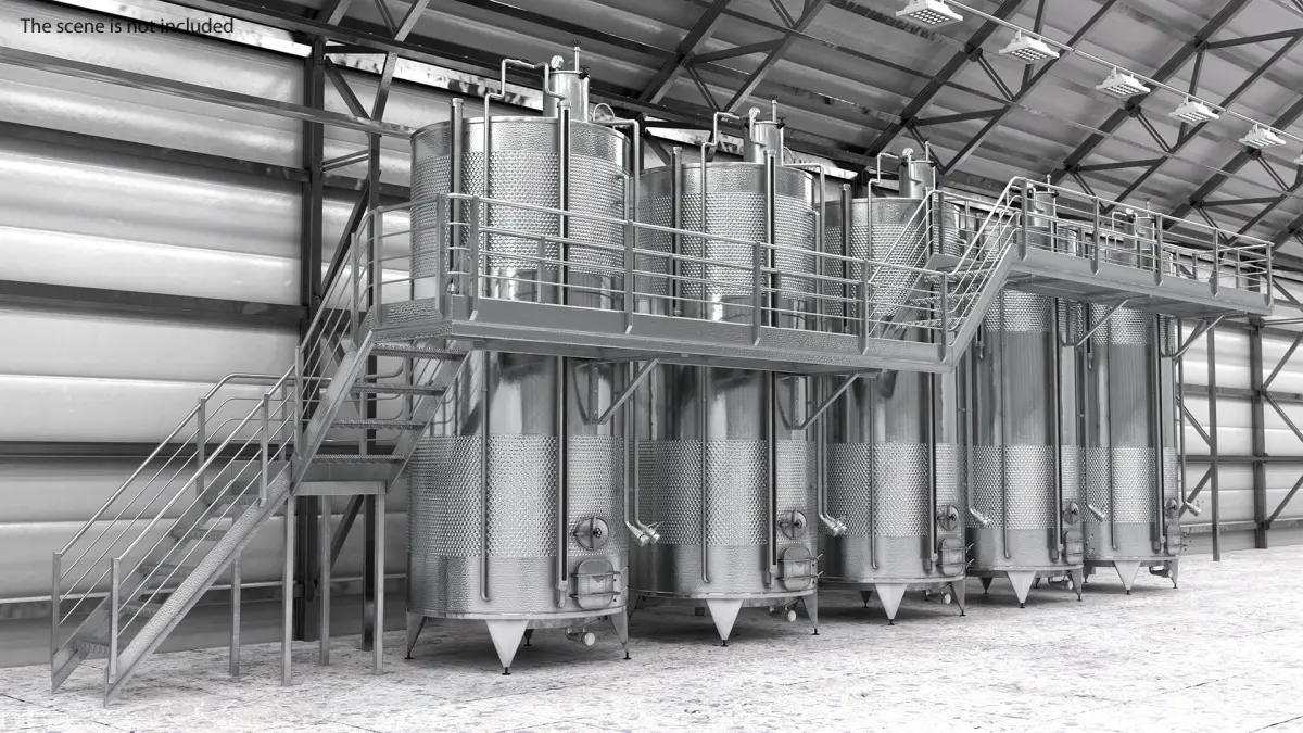 Stainless Steel Tanks Collection with Brewery Fermentation Tank a part of a restaurants and farms small traditional beer production system. Fermentation Tank a part of a restaurants and farms small traditional beer production system; Impiantinox Easybrau Velo Inliner Beer Tank System a beer microbrewery equipment; and Stainless Steel Wine Tanks Set with Stairs a modern winery specialized equipment that keeps the cap of marc submerged for the desired amount of time, and exploiting the natural CO2 that is used for traditional pumping over musts without moving the natural gas.
