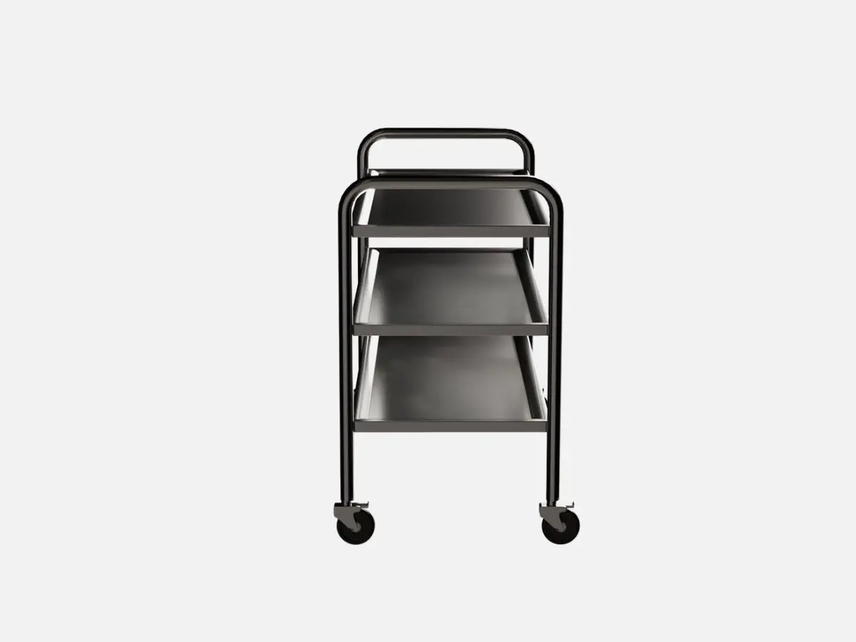 Stainless Trolley Shelf 3D model. The model has details and materials. Ready to be staged and used. Realistic view. Visualized with Corona. Other forms such as Object, dxf, dae are also available.
