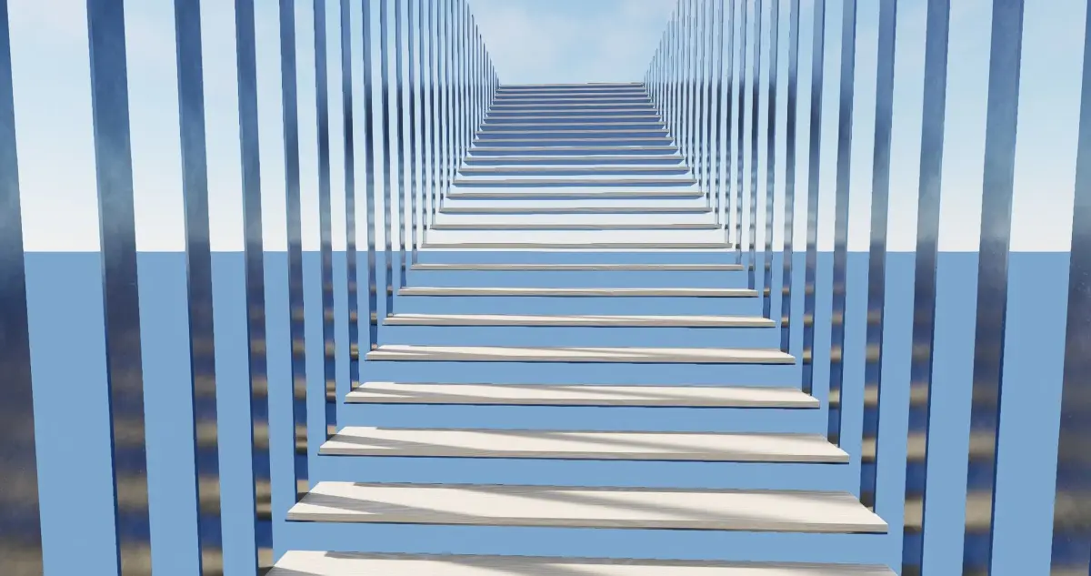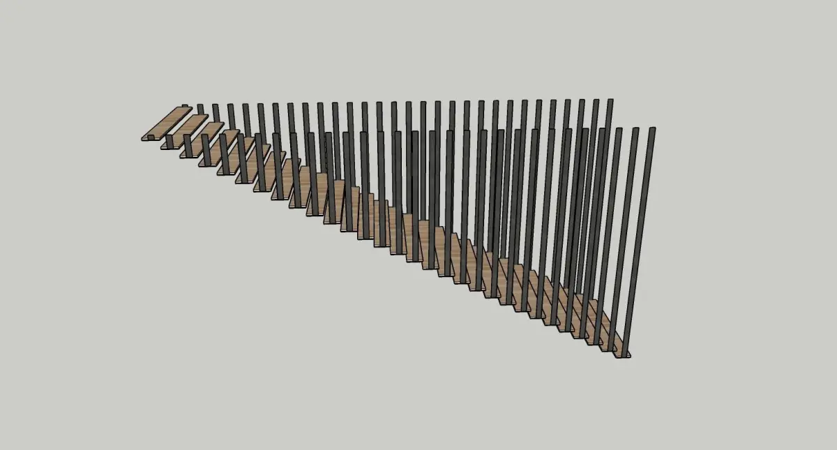 Stair01 triangle made of metal and wood Low-poly 3D model
