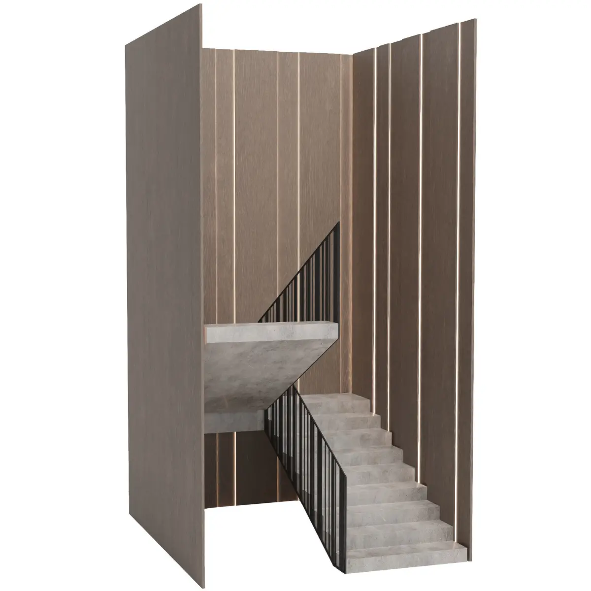 The original staircase in a modern style with decorative wood panels. Perfectly fit into many interiors.Good renders!