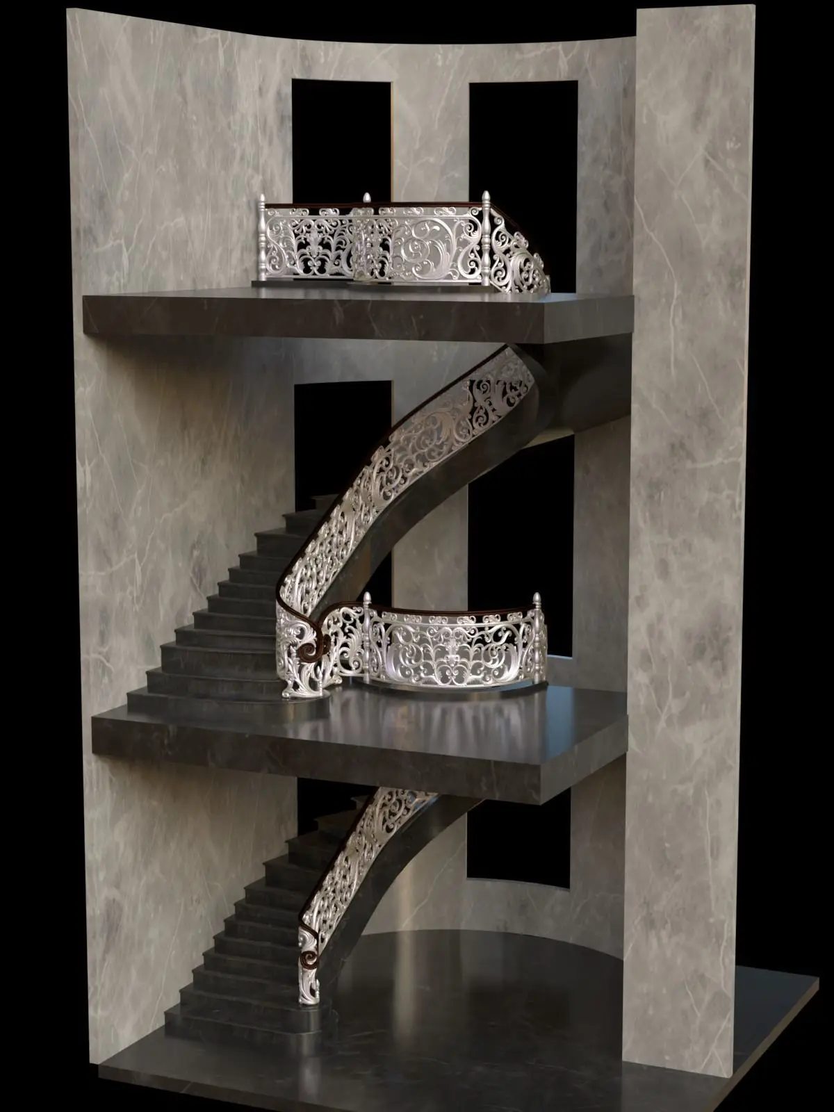 Full editable composite low-poly model of staircase railings 2