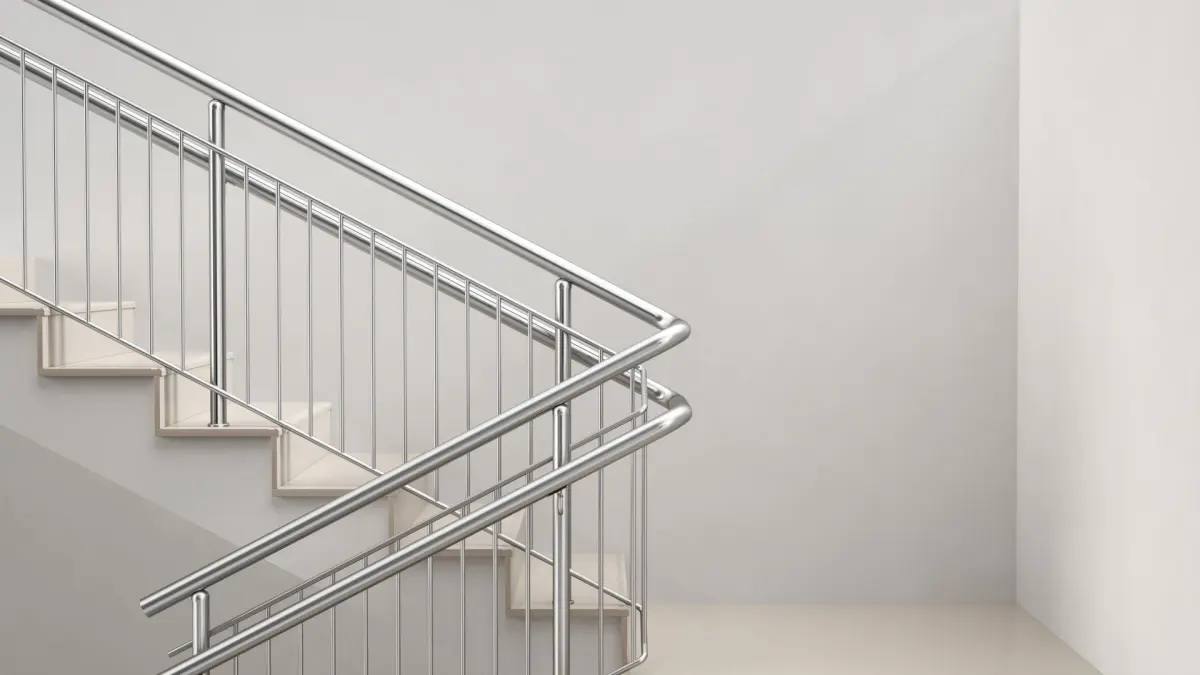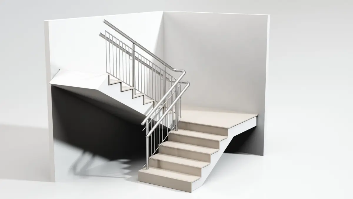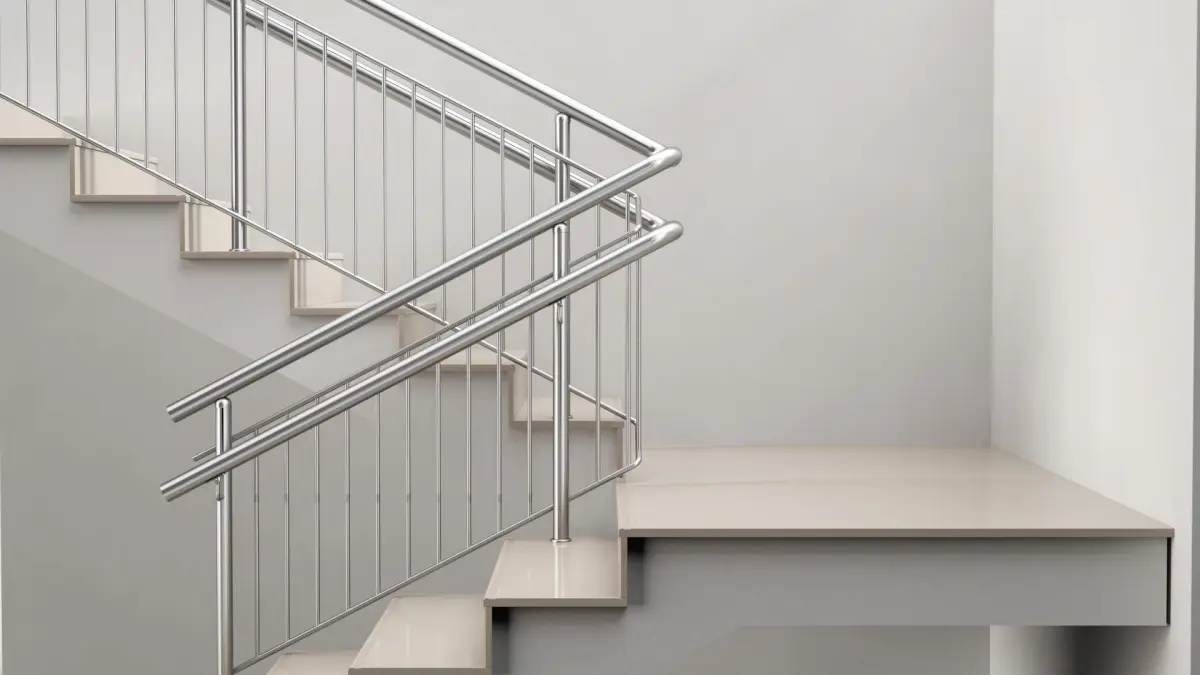 Stairs with vertical railing.