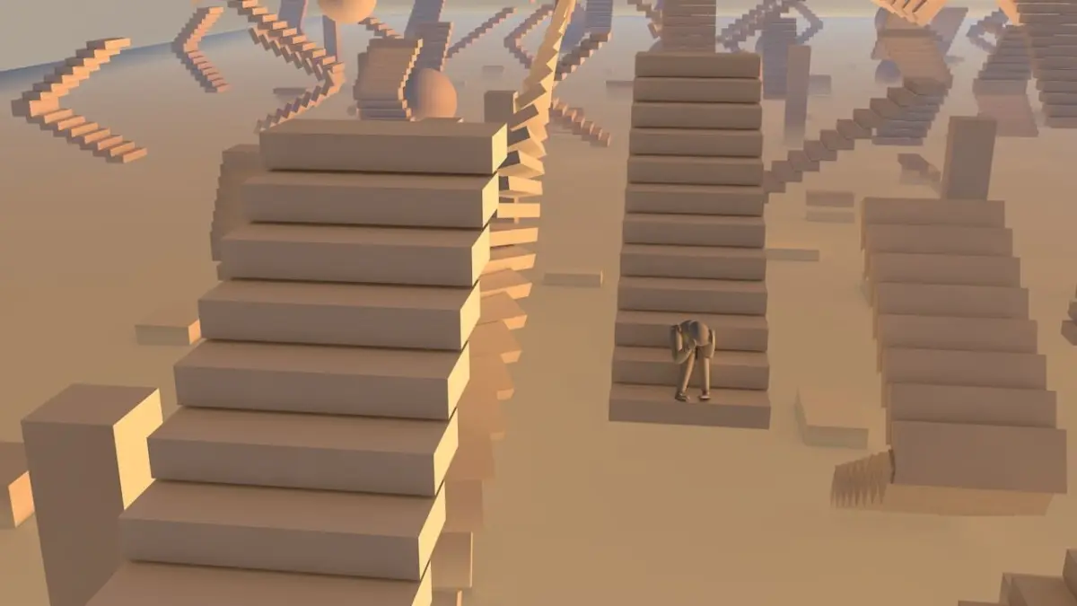 i made this low poly render to look like a maze type landscape and with sunset lighting with fog and lights and a rigged character in the middle i tried to make it look like a video game type render